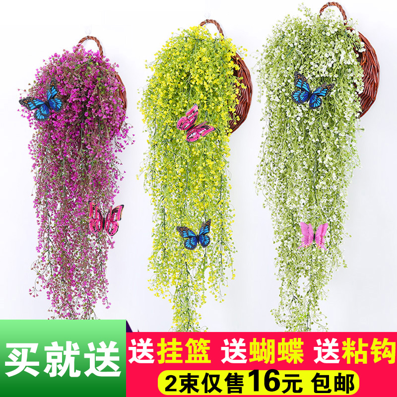 仿真绿植物壁挂假花藤条墙壁挂花塑料花客厅垂吊墙面吊兰装饰