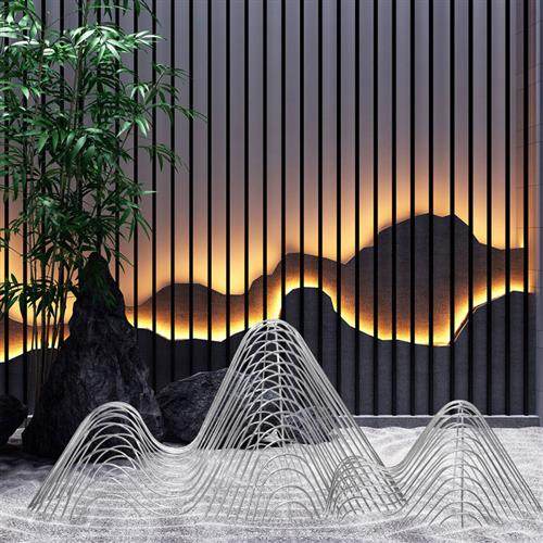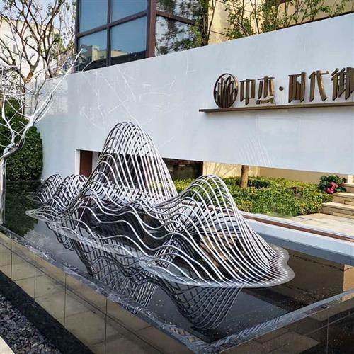 户外不锈钢镜面镂空假山雕塑酒店地产水景装饰售楼部水池造景摆件