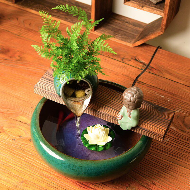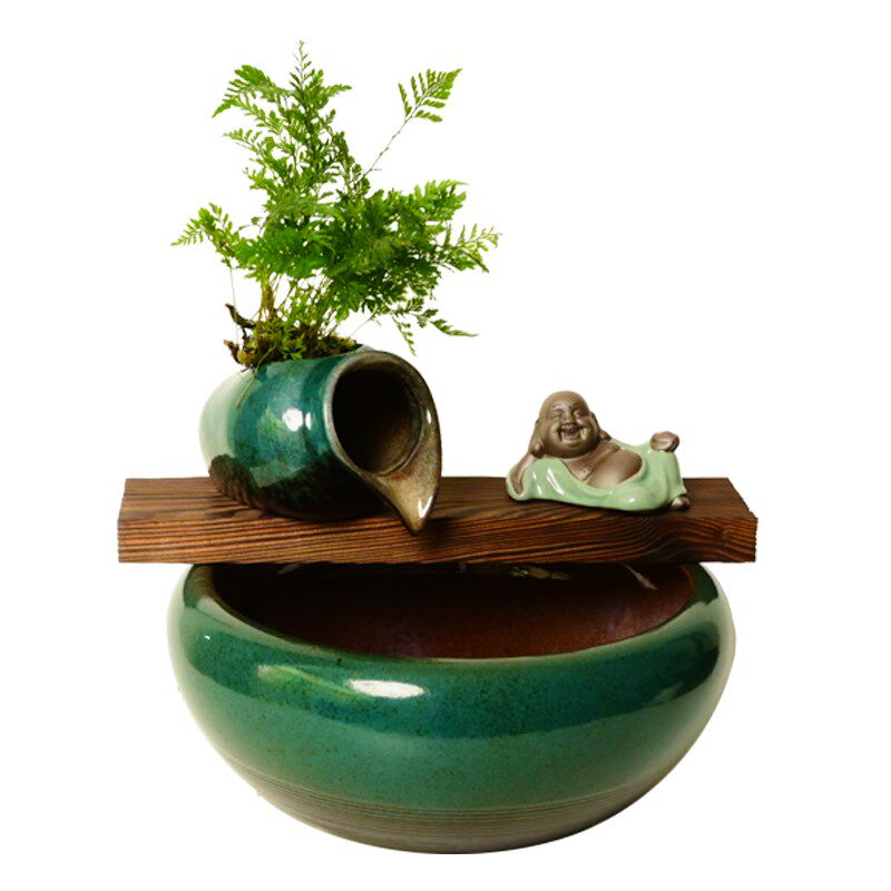 桌面陶瓷招财流水摆件古法养鱼陶罐小型生态金鱼缸循环可过滤装饰