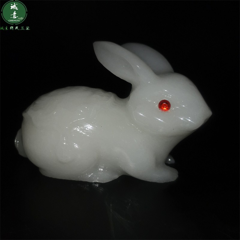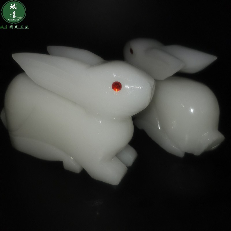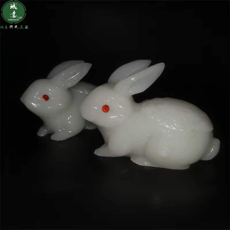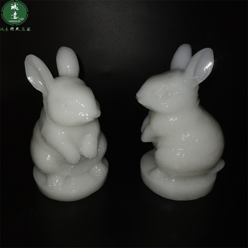 天然汉白玉石站立发财生肖小玉兔子公仔模型桌面摆件招财客厅一对