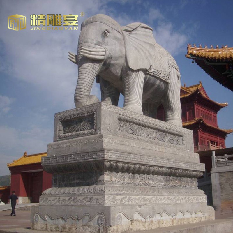 定制大理石景观雕塑户外大型石雕动物雕像城市园林大象石材制作