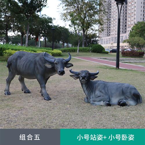 仿真奶牛雕塑牧童骑水牛大型摆件农耕文化模型玻璃钢园林景观动物