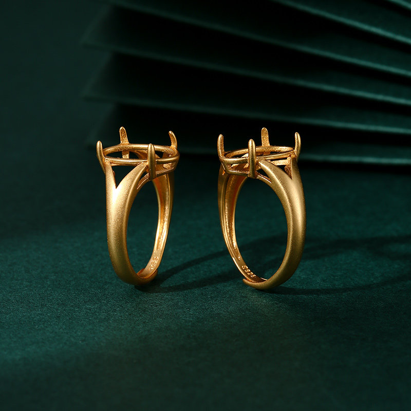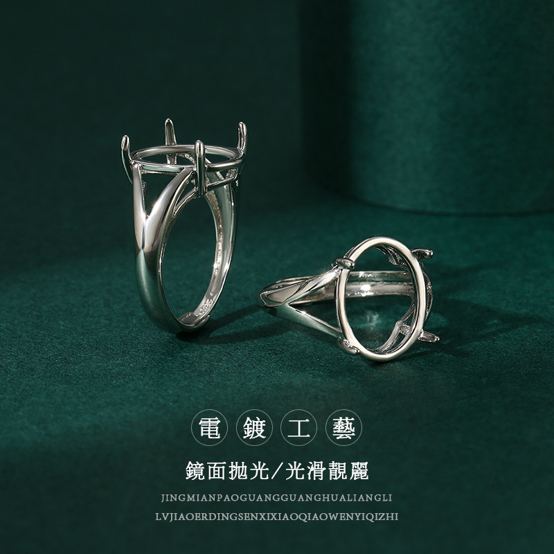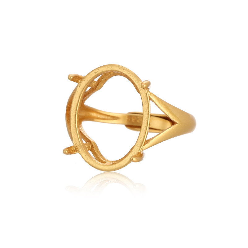 18K工艺戒指空托椭圆形戒指托 镶嵌蜜蜡翡翠琥珀绿松石戒指托空托