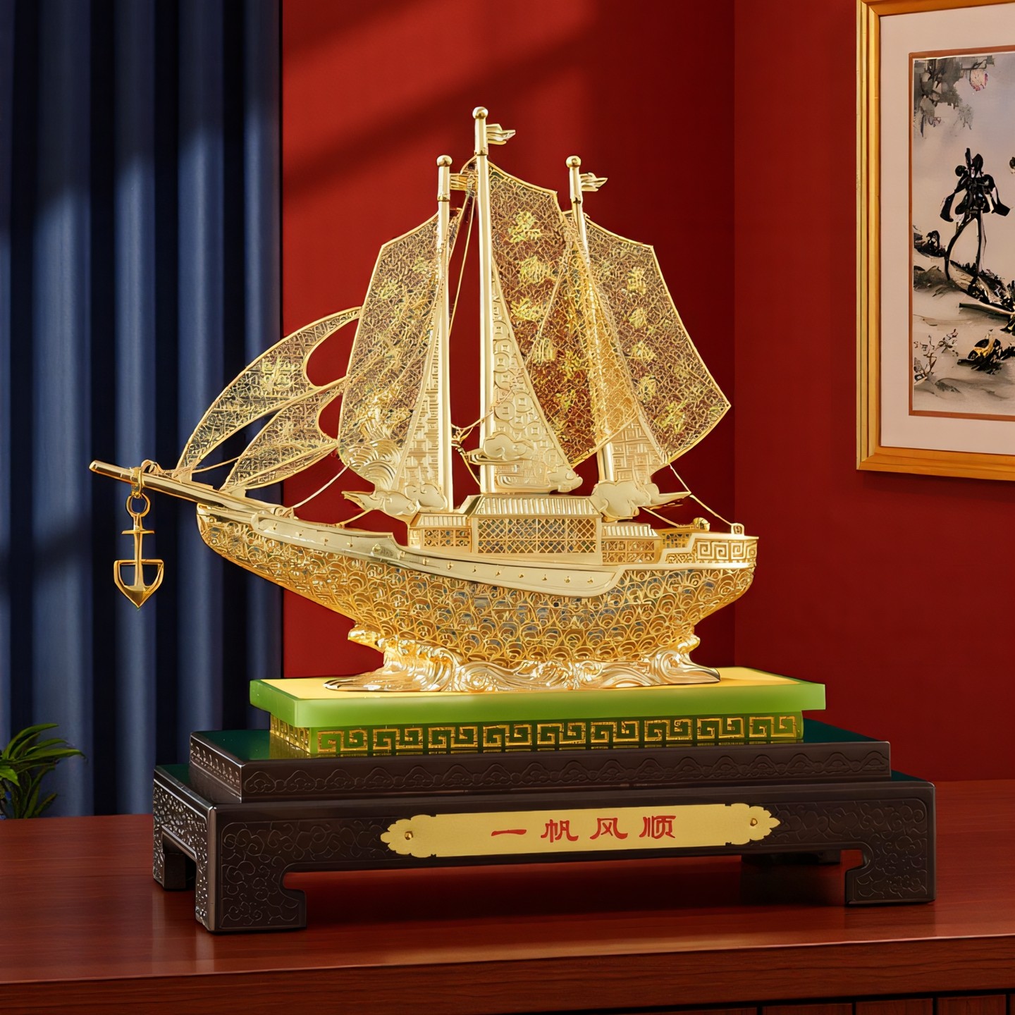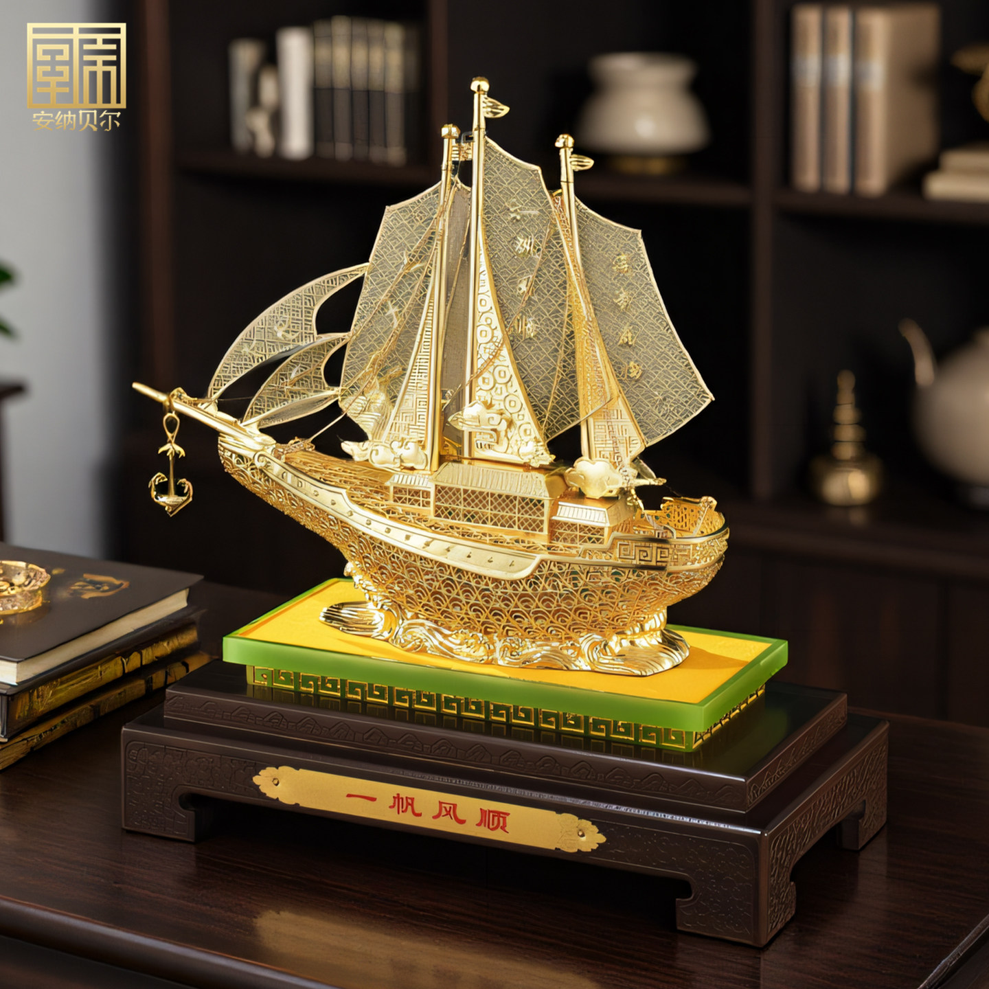 铜一帆风顺帆船摆件领导高档办公室装饰搬新公司搬迁乔迁开业礼物