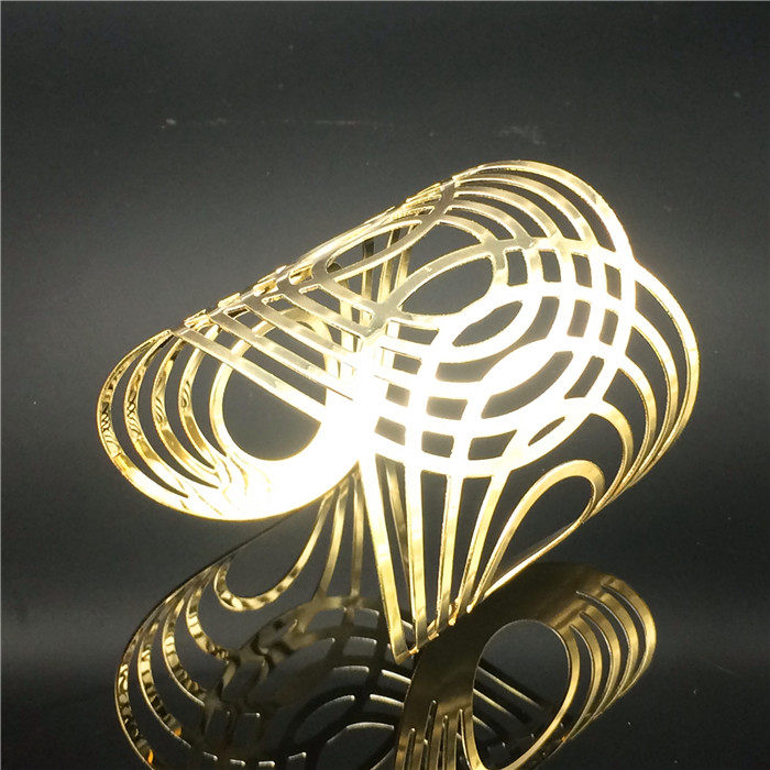 欧美手饰 欧美韩版流行金色朋克金属开口宽 手镯 女2016 bracelet