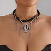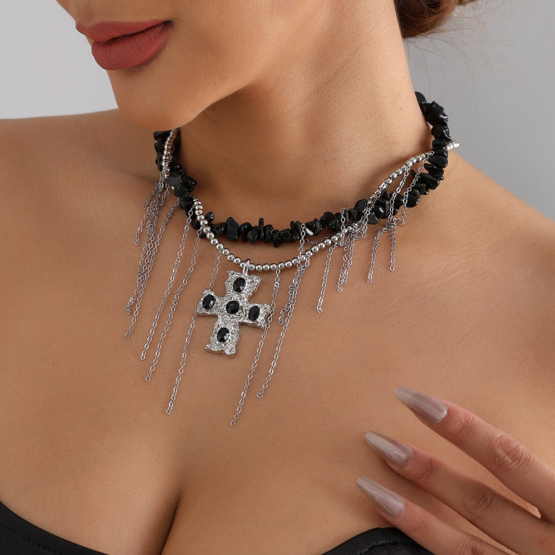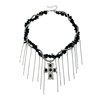欧美饰品暗黑系十字架项链女辣妹风黑色石头流苏项饰necklace首饰