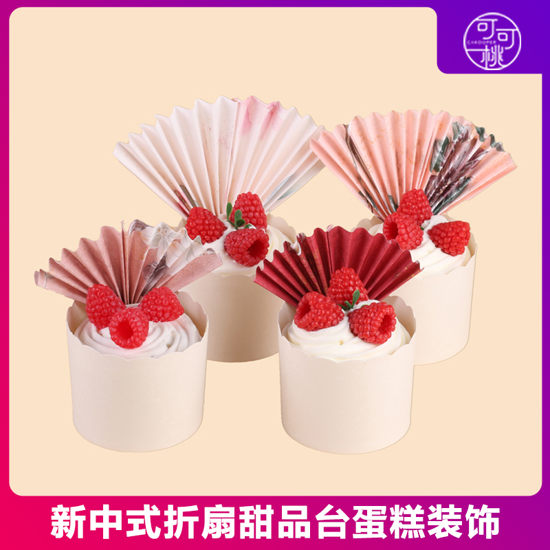 新款国风蛋糕装饰木棉纸折扇中式周岁生日甜品台装扮纸杯插件扇子