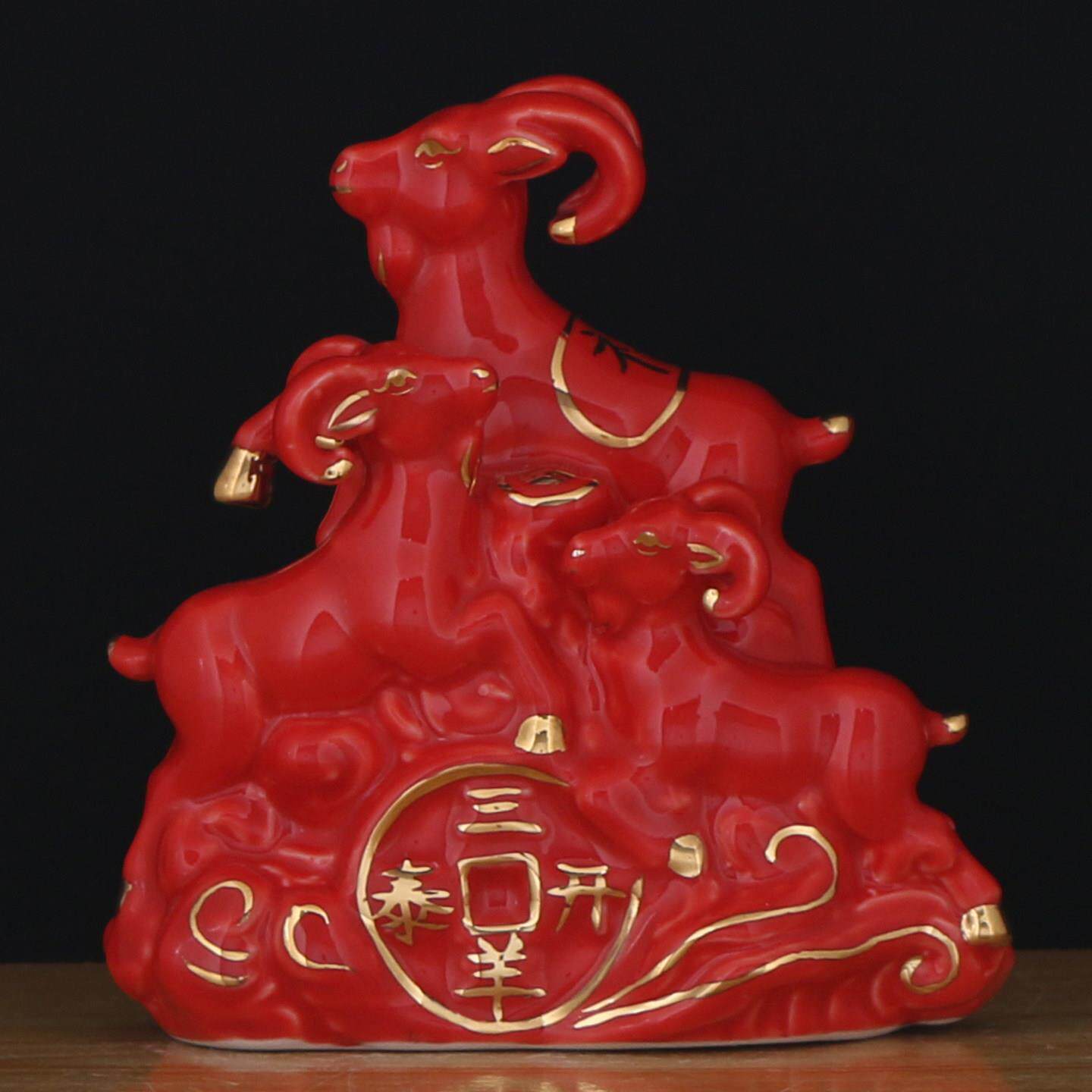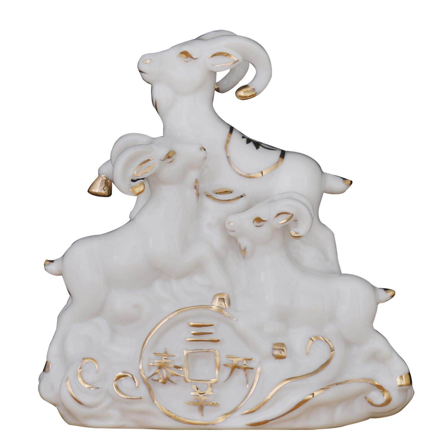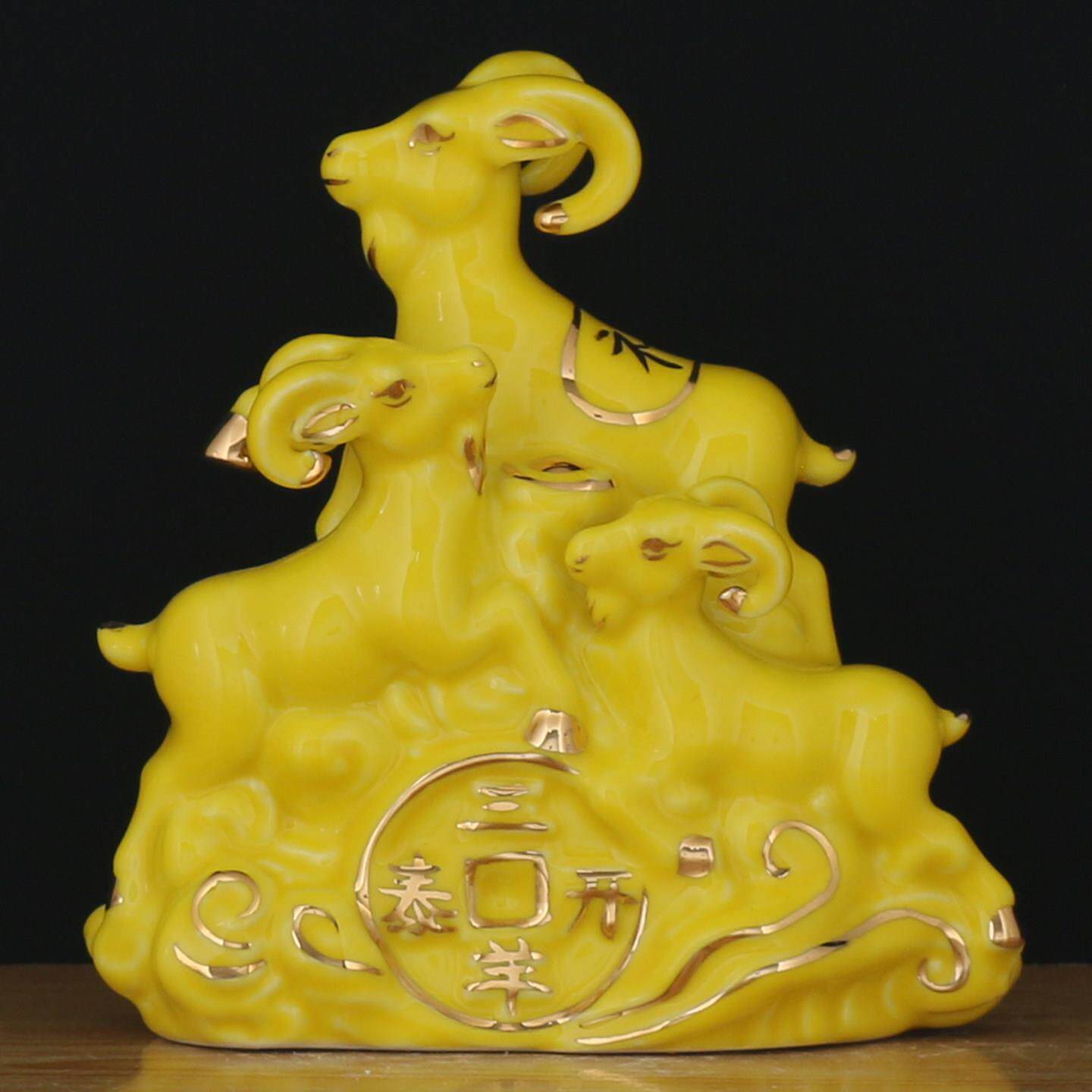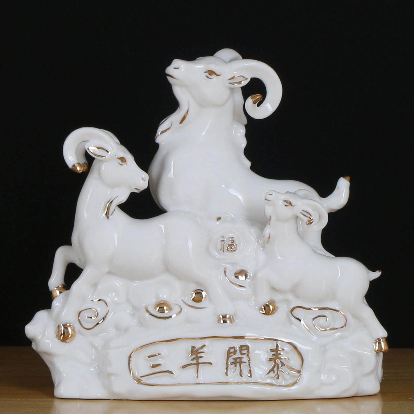 白色陶瓷三羊开泰小摆件客厅镇宅招财补角摆件三阳开泰工艺品装饰