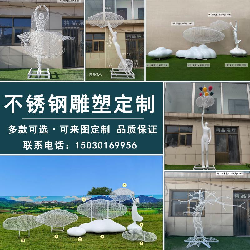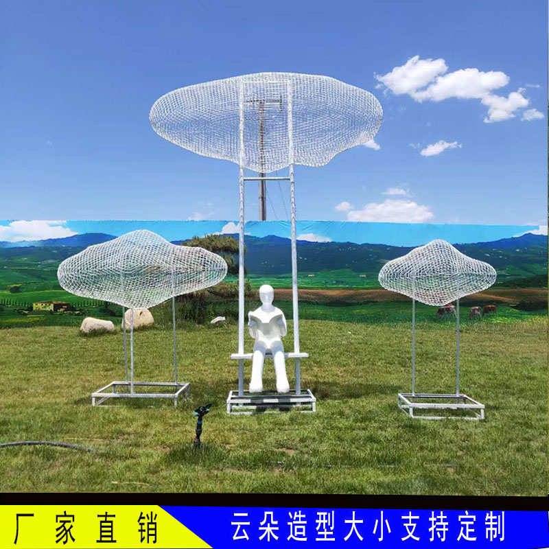 不锈钢铁艺镂空云朵雕塑金属景区公园定制装饰户外玻璃钢人物摆件