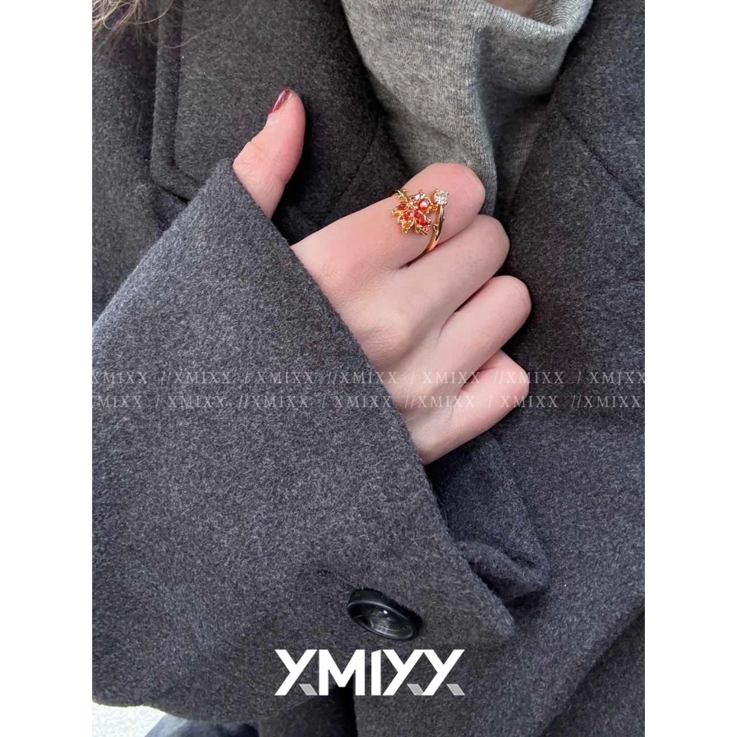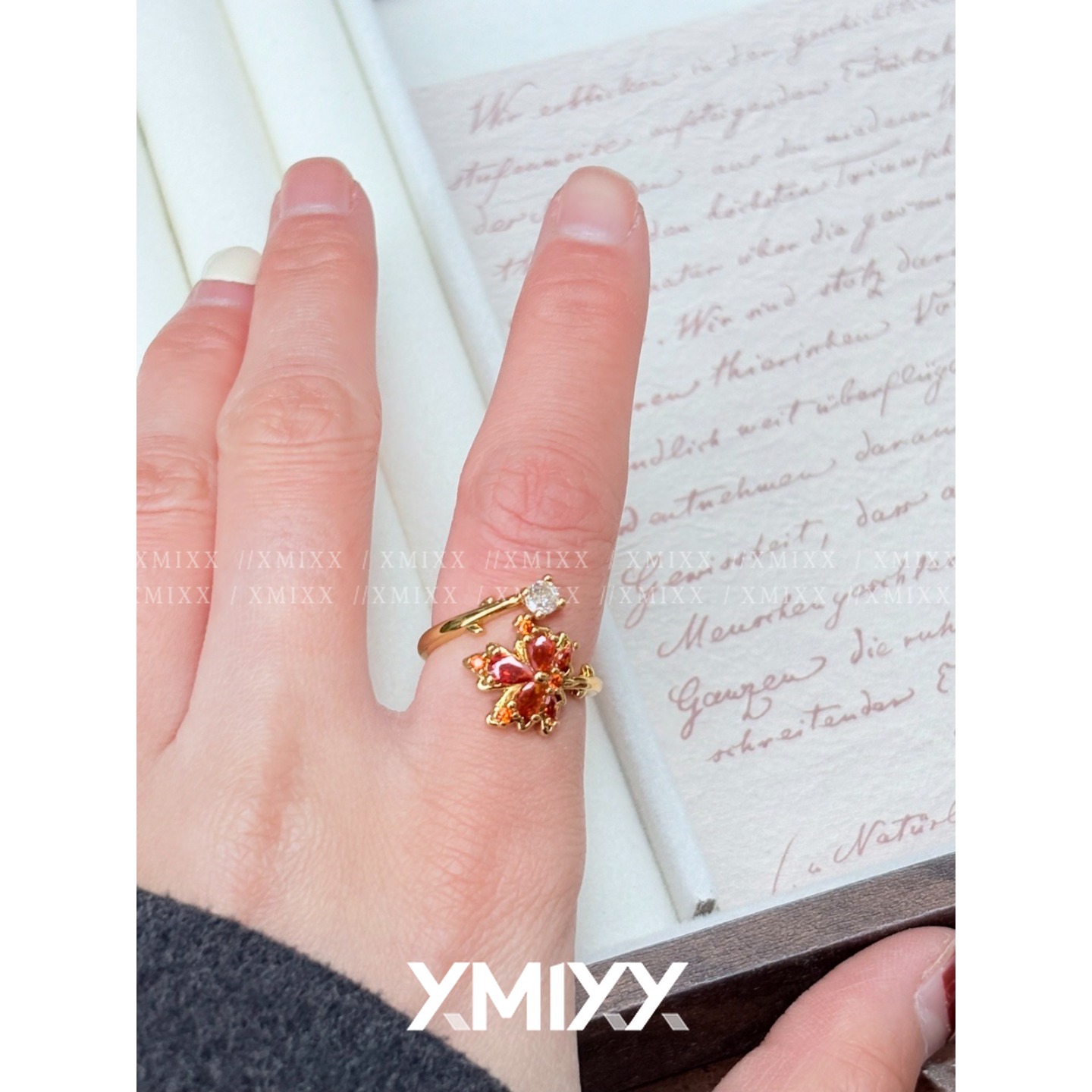 红色枫叶锆石开口戒指艺术高级感小众爆款开口戒指轻奢时尚精致感