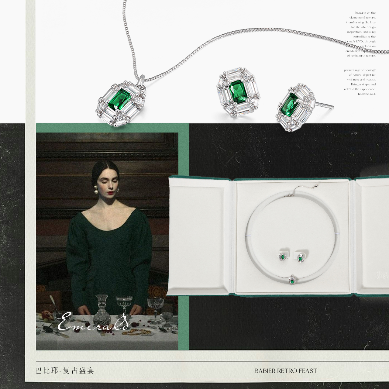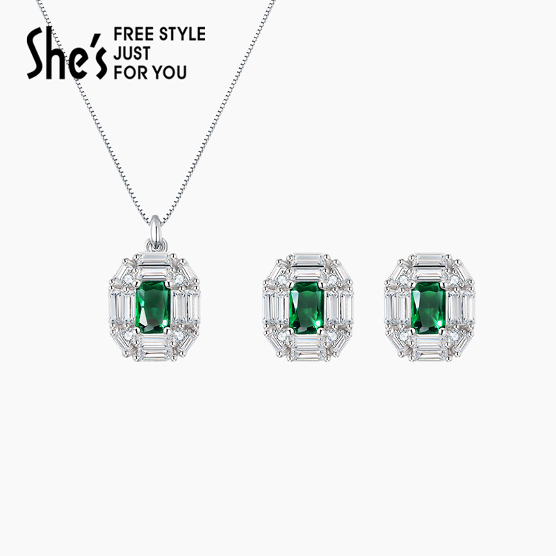 shes茜子祖母绿色项链耳钉礼盒套装锁骨链女高级轻奢时尚生日礼物