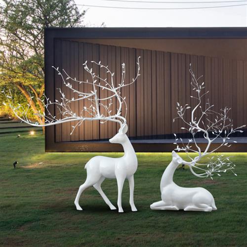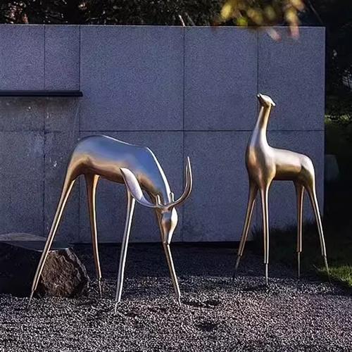 不锈钢抽象大角鹿雕塑镂空鹿摆件户外别墅酒店会所房地产美陈装饰