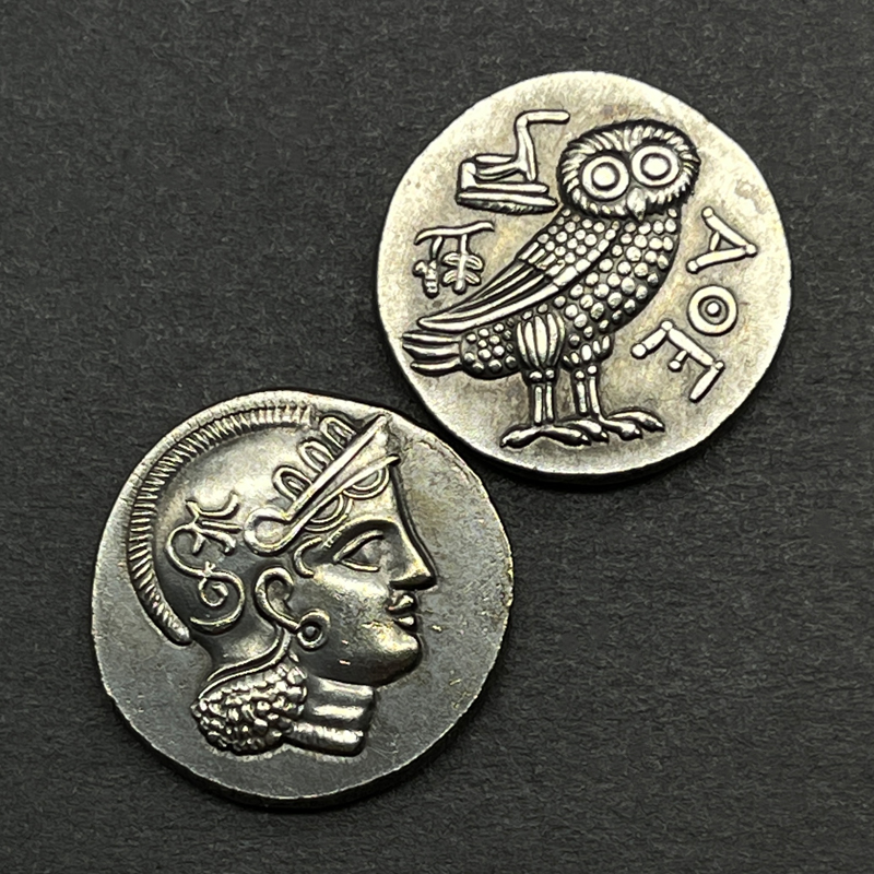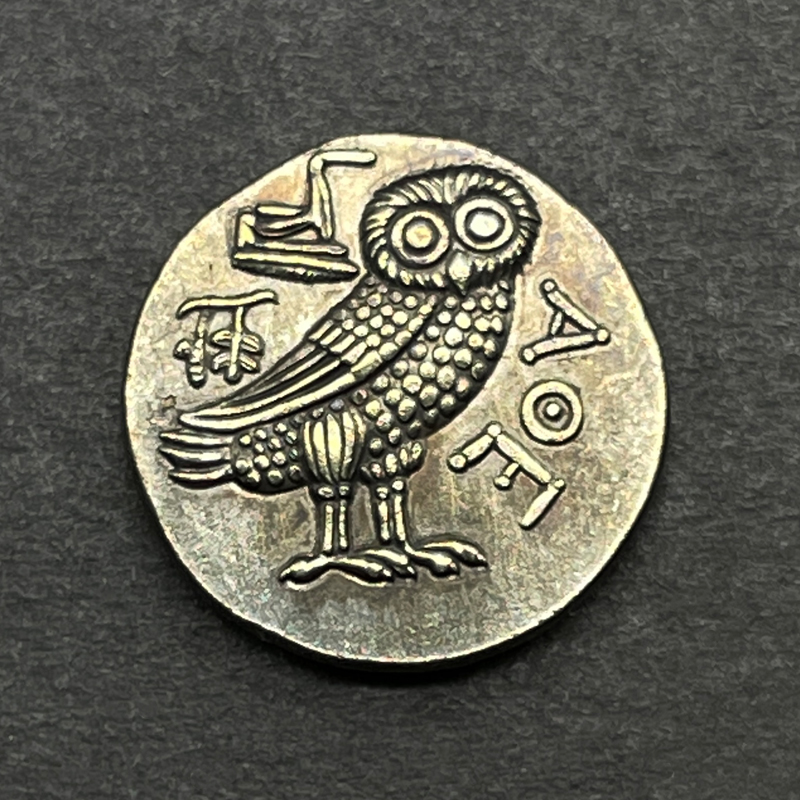 希腊银币饰品智慧女神雅典娜猫头鹰币浮雕硬币项链古币吊坠水瓶座