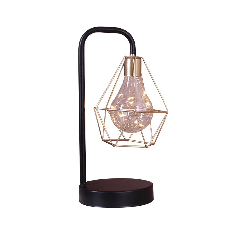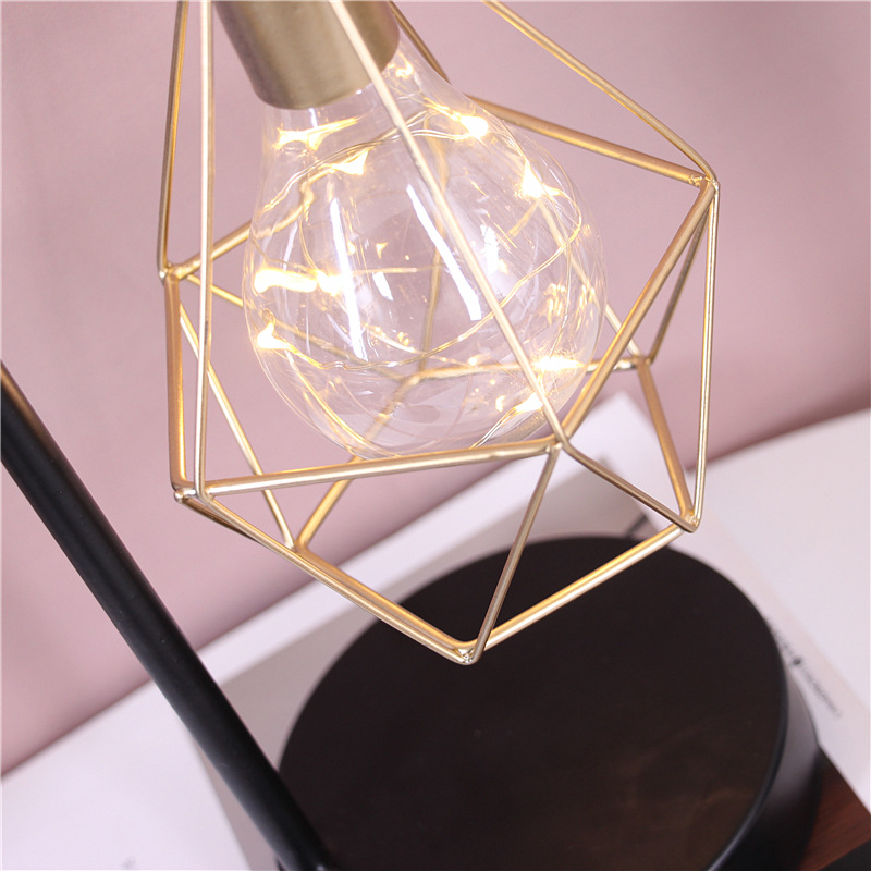 北欧创意铁艺几何玻璃钻石灯小夜灯家居饰品摆件卧室床头简约台灯
