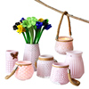 欧式创意手工琉璃仿真花束精致小插件粉色做旧花瓶麻绳提手风灯