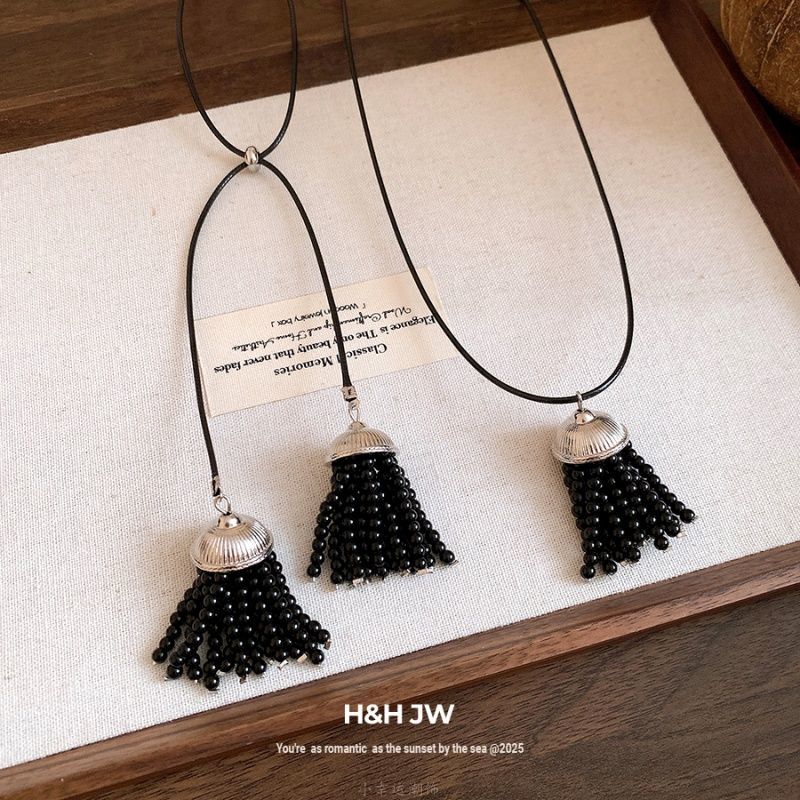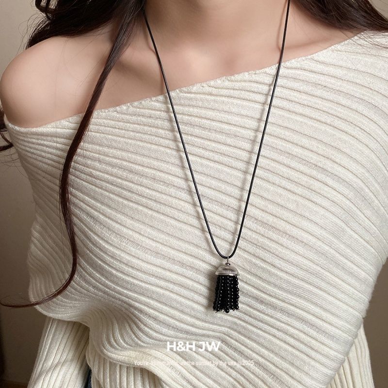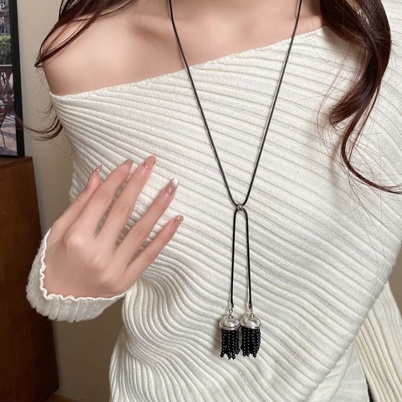 抽拉式皮革圆形流苏项链女长款秋冬毛衣链大气高档高级感精致配饰