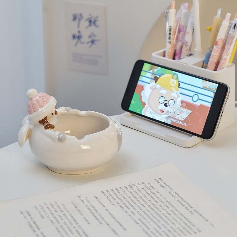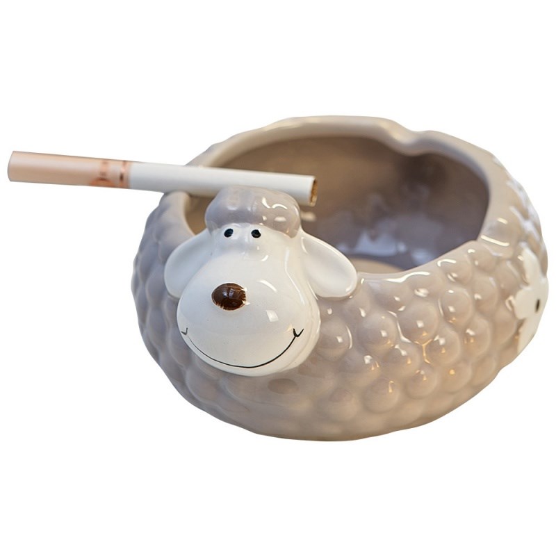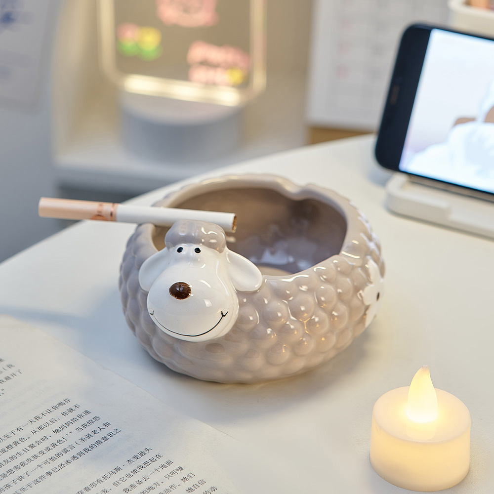 创意可爱小羊烟灰缸高级感小众装饰摆件家用客厅茶几少女陶瓷烟缸