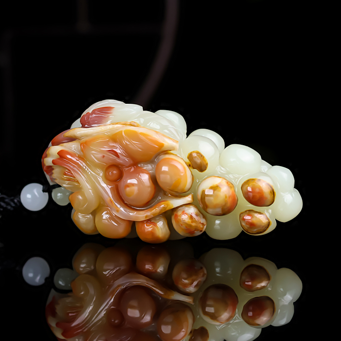 天然新疆和田玉籽料葡萄手把件精雕硕果累累把玩件玉石挂件小摆件