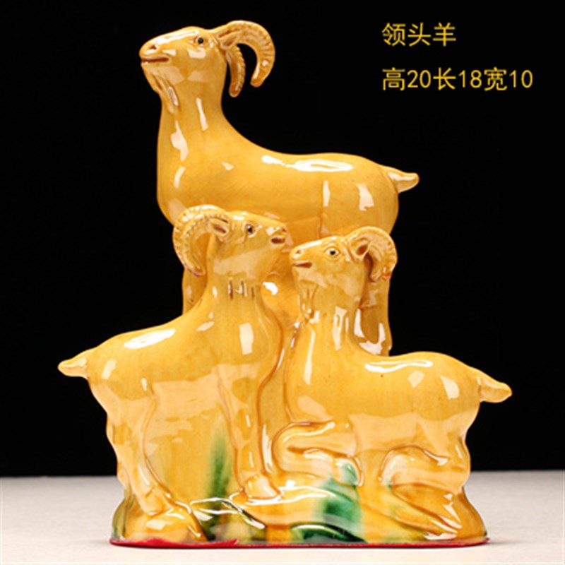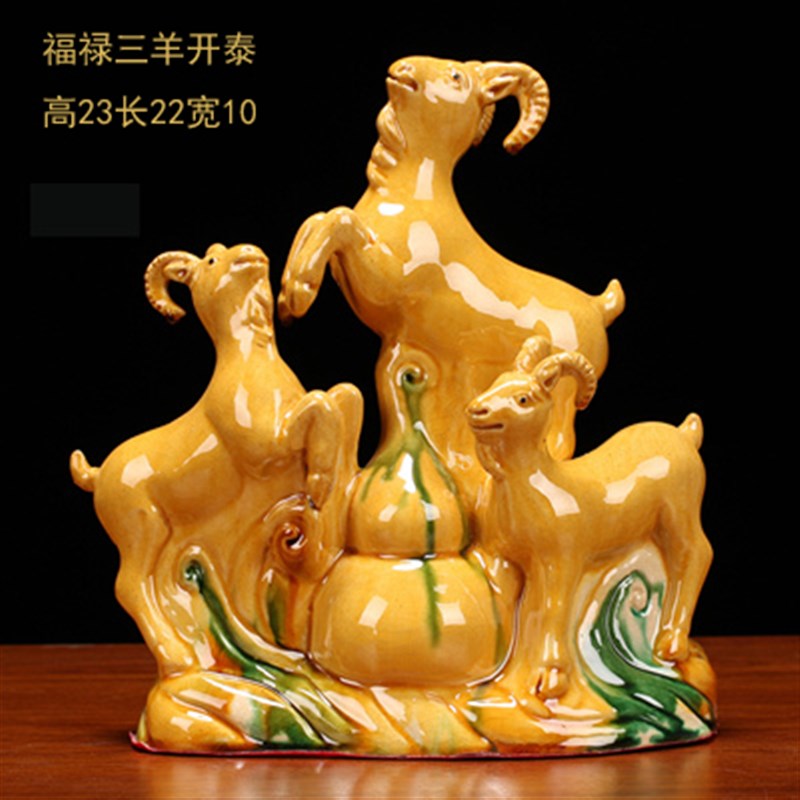 三羊开泰黄色陶瓷器属相招财摆件十二生肖羊玄关工艺品家居饰品阳