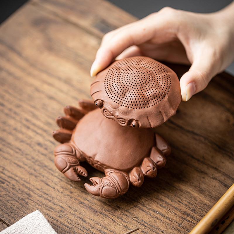 创意螃蟹一体过滤茶漏紫砂可养茶宠摆件茶滤茶道配件茶桌茶台装饰
