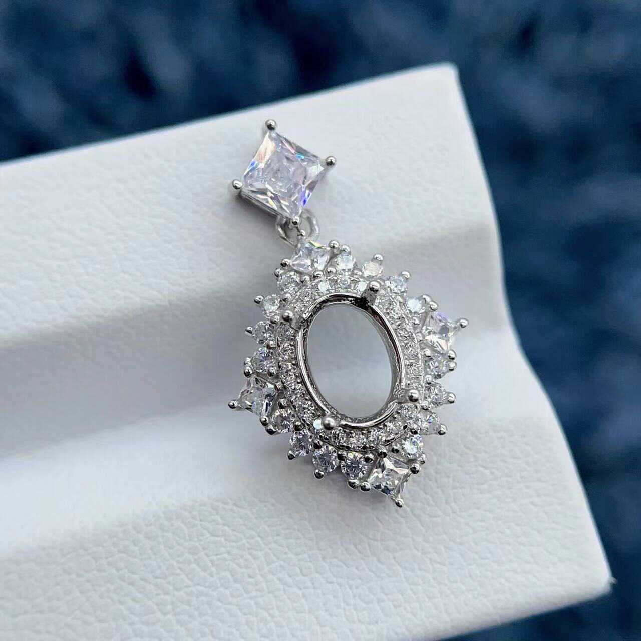 S925纯银吊坠空托椭圆形6*8mm精致彩宝翡翠银托未镶嵌银饰配件女