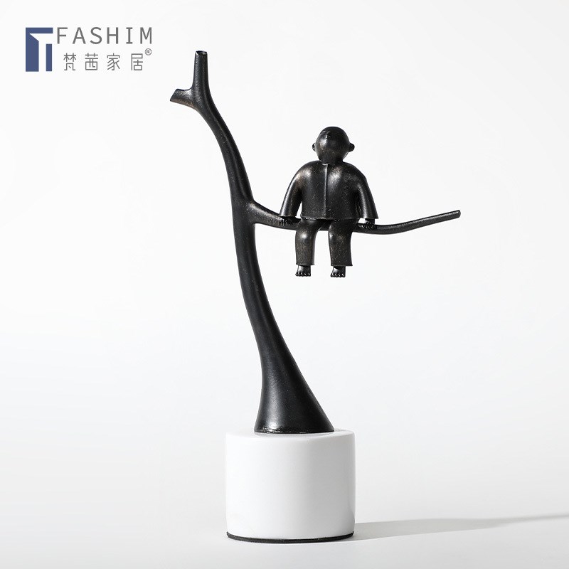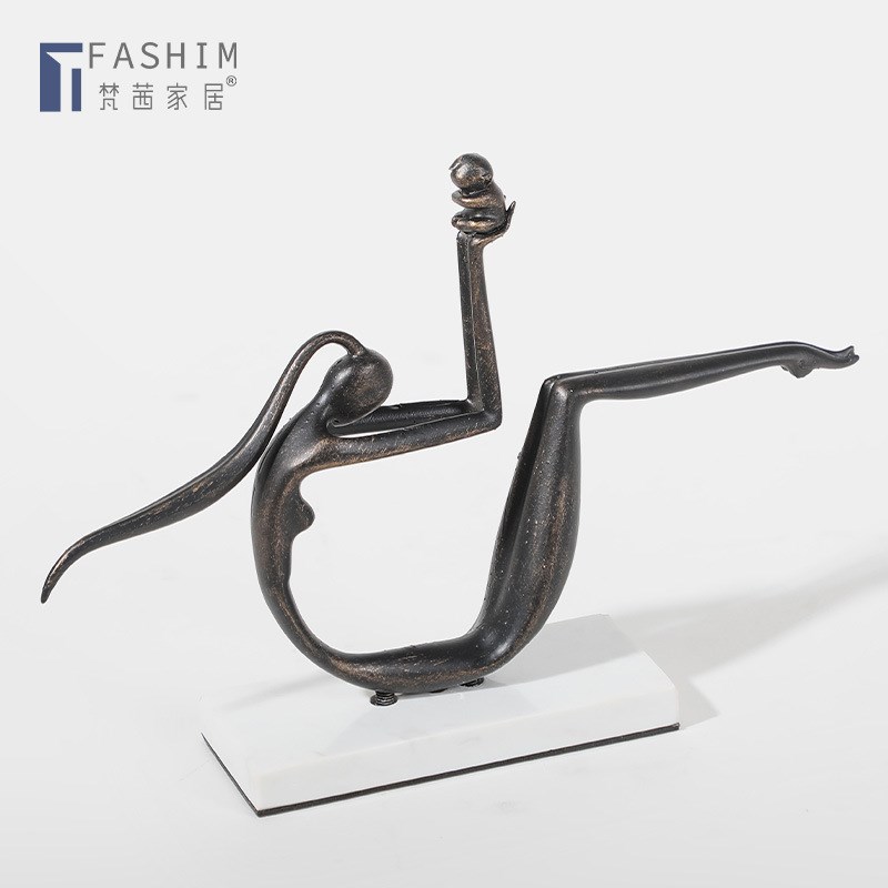 现代轻奢家居样板房玄关金属人物雕塑酒店L大堂展厅电视柜桌面摆