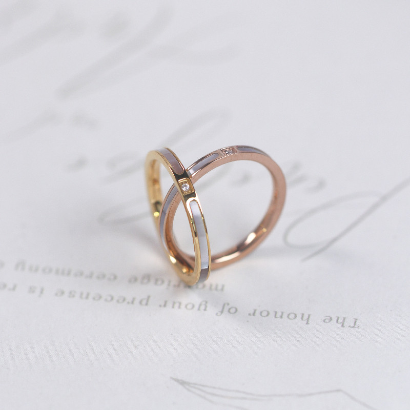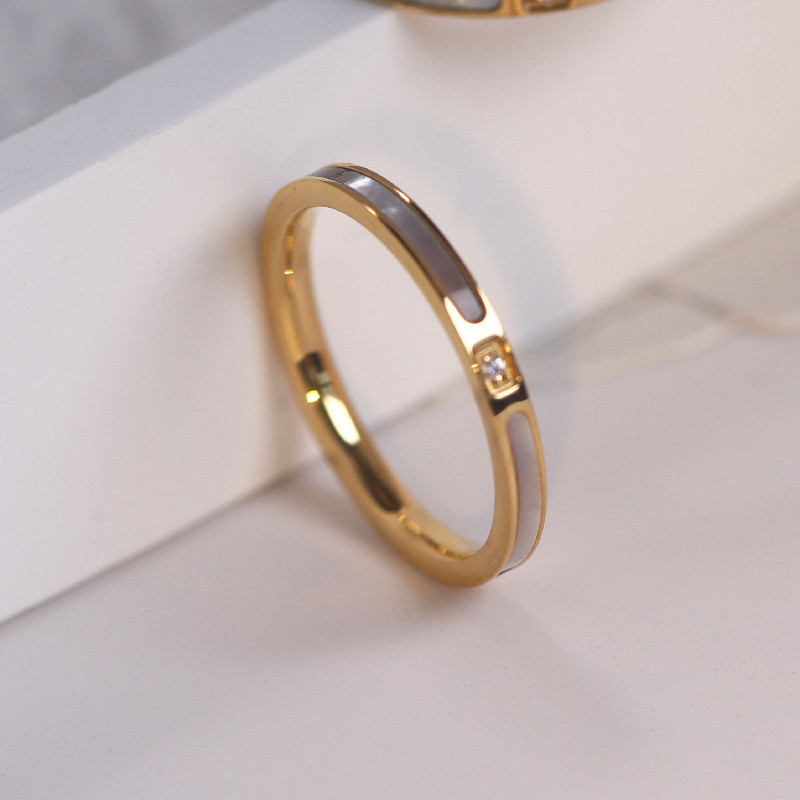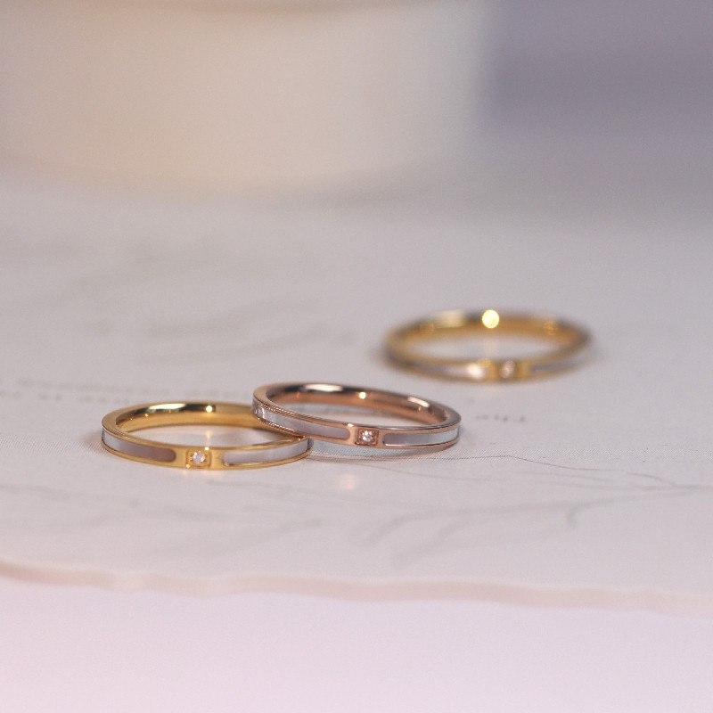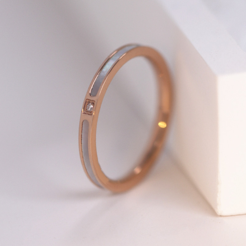 不掉色!一颗钻高级感极光贝母细版新款单钻周圈贝壳叠戴钛钢戒指