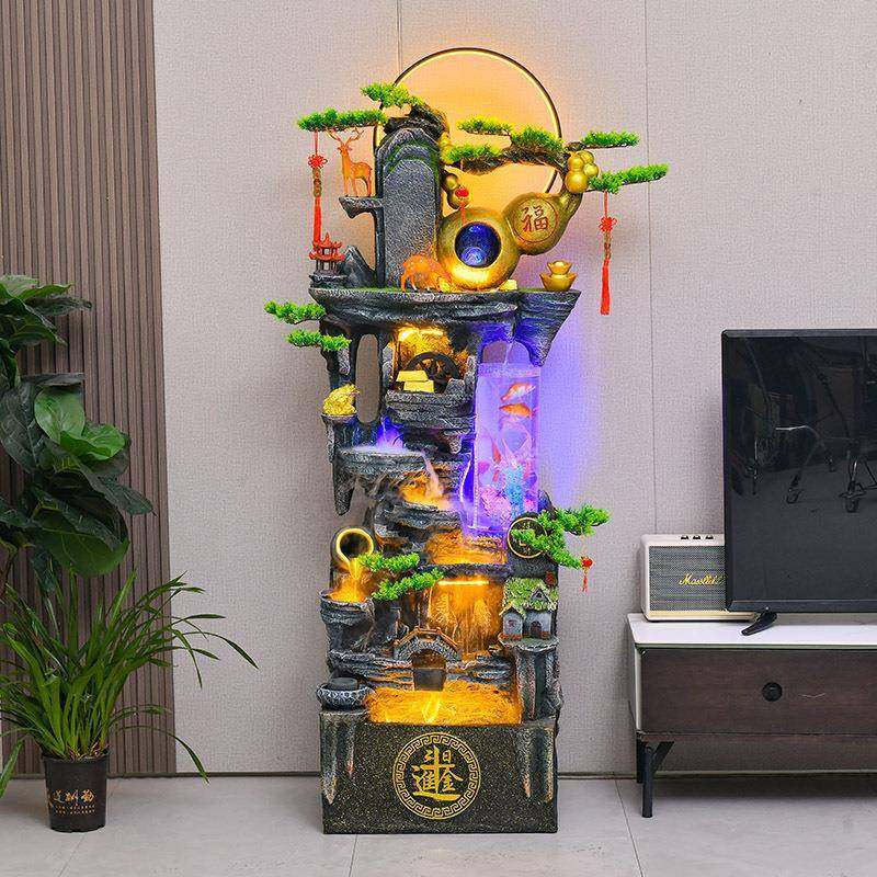 落地假山流水喷泉摆件客厅办公室生财装饰风水轮高山循环鱼缸水景