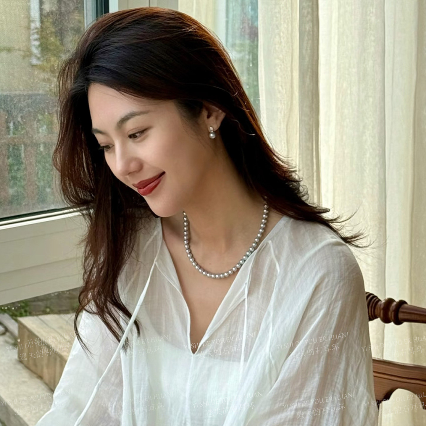 项链高级感轻奢小众真多麻灰色珍珠秋冬颈链气质锁骨链脖子配饰