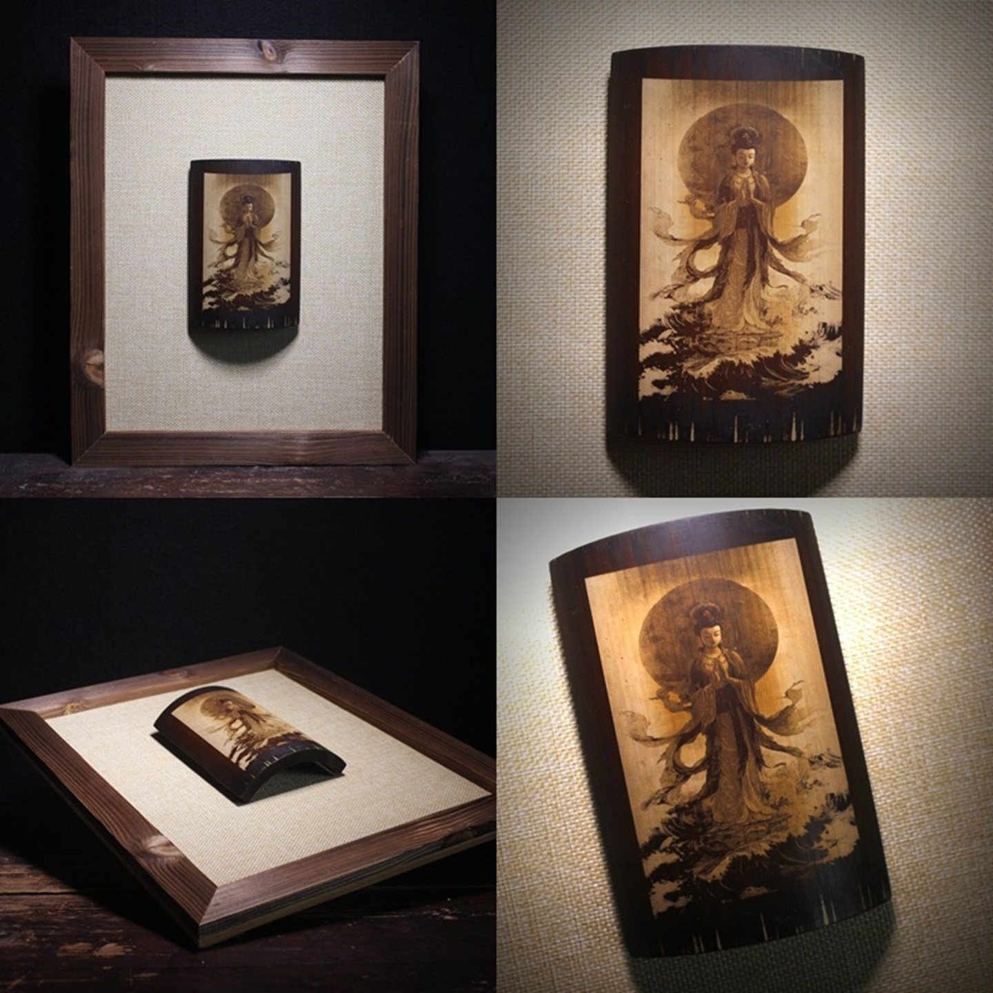 楠竹仿古书房茶室摆件装饰画禅意创意雕刻可定制文字图案配实木框
