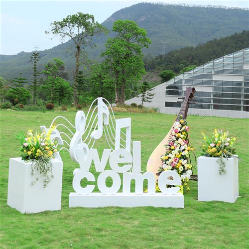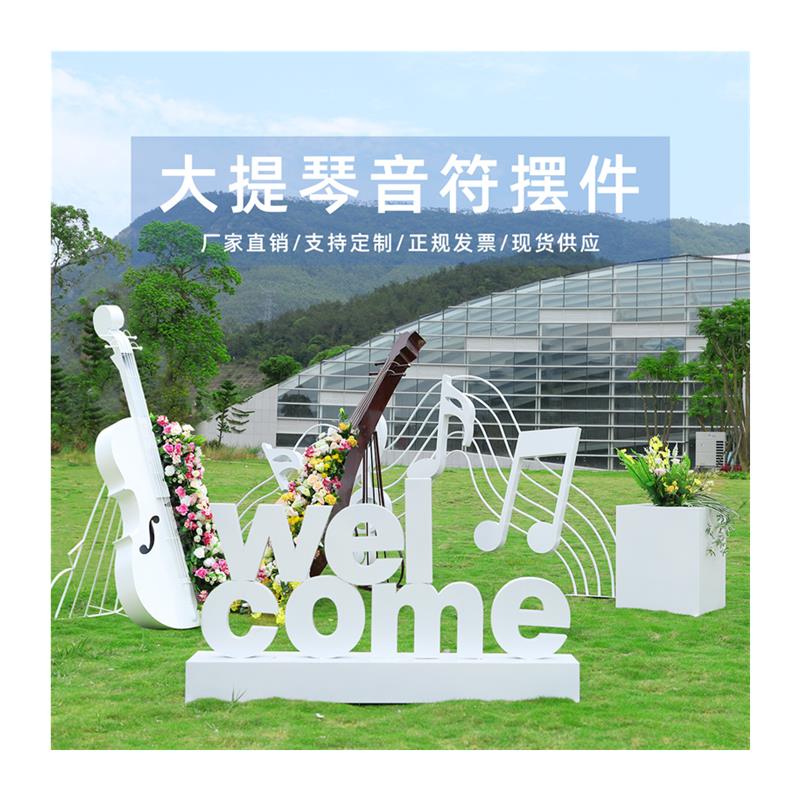 户外不锈钢大提琴花架金属摆件小区公园林仿真字母音符雕塑装饰品