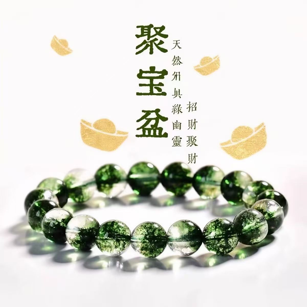 绿幽灵招财转运手链水晶招财手串仿幽灵聚宝盆爆花晶玻璃手链