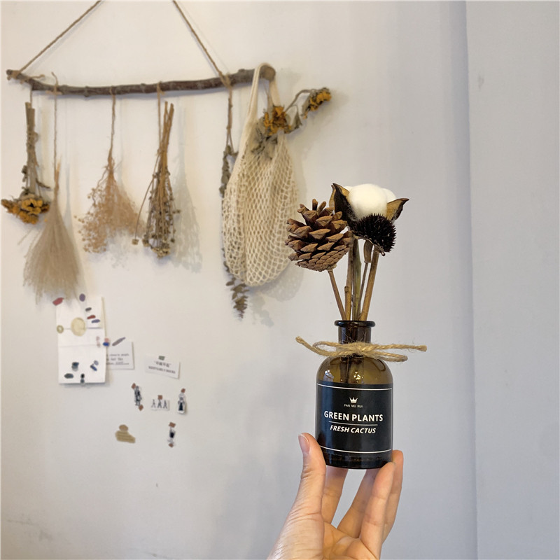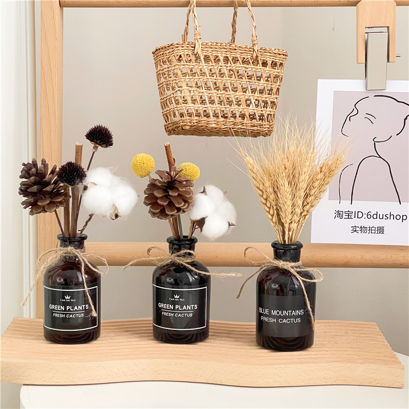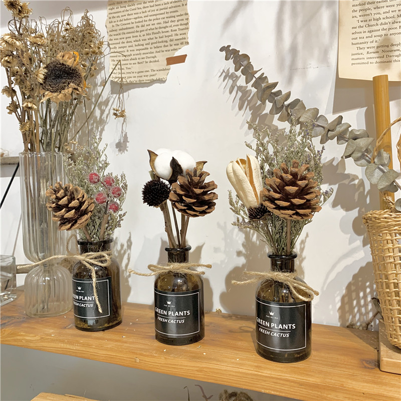 ins桌面摆件北欧尤加利松果棉花干花玻璃花瓶家居清新摆设装饰品