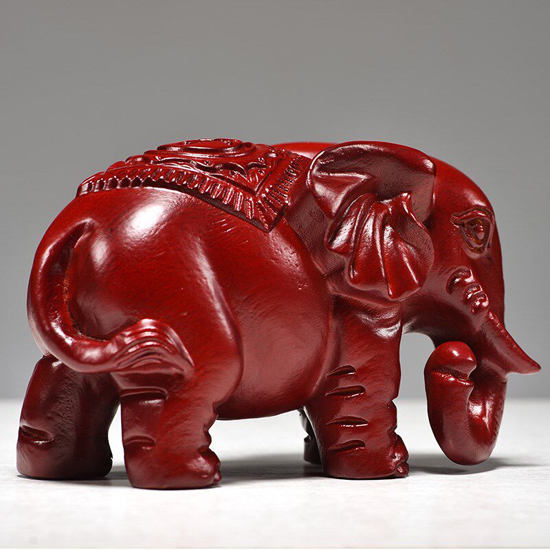 红色实木质大象摆件一对象木雕小象客厅桌面家居装饰红木工艺礼品