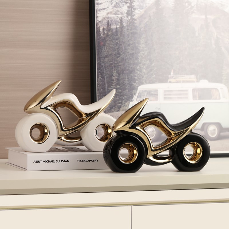 佳感陶瓷摩托机车模型轻奢高档玄关酒柜摆件创意办公室桌面装饰品