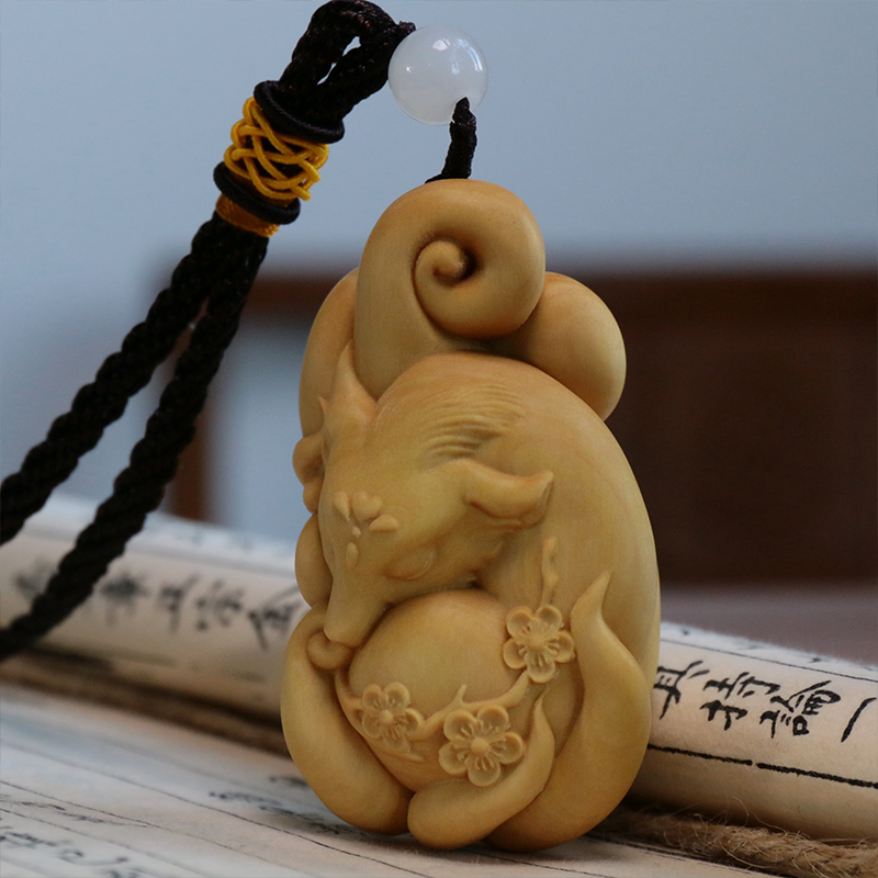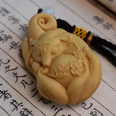 小叶黄杨木雕手把件九尾狐雕刻工艺礼品动物神兽文玩实木饰品挂件