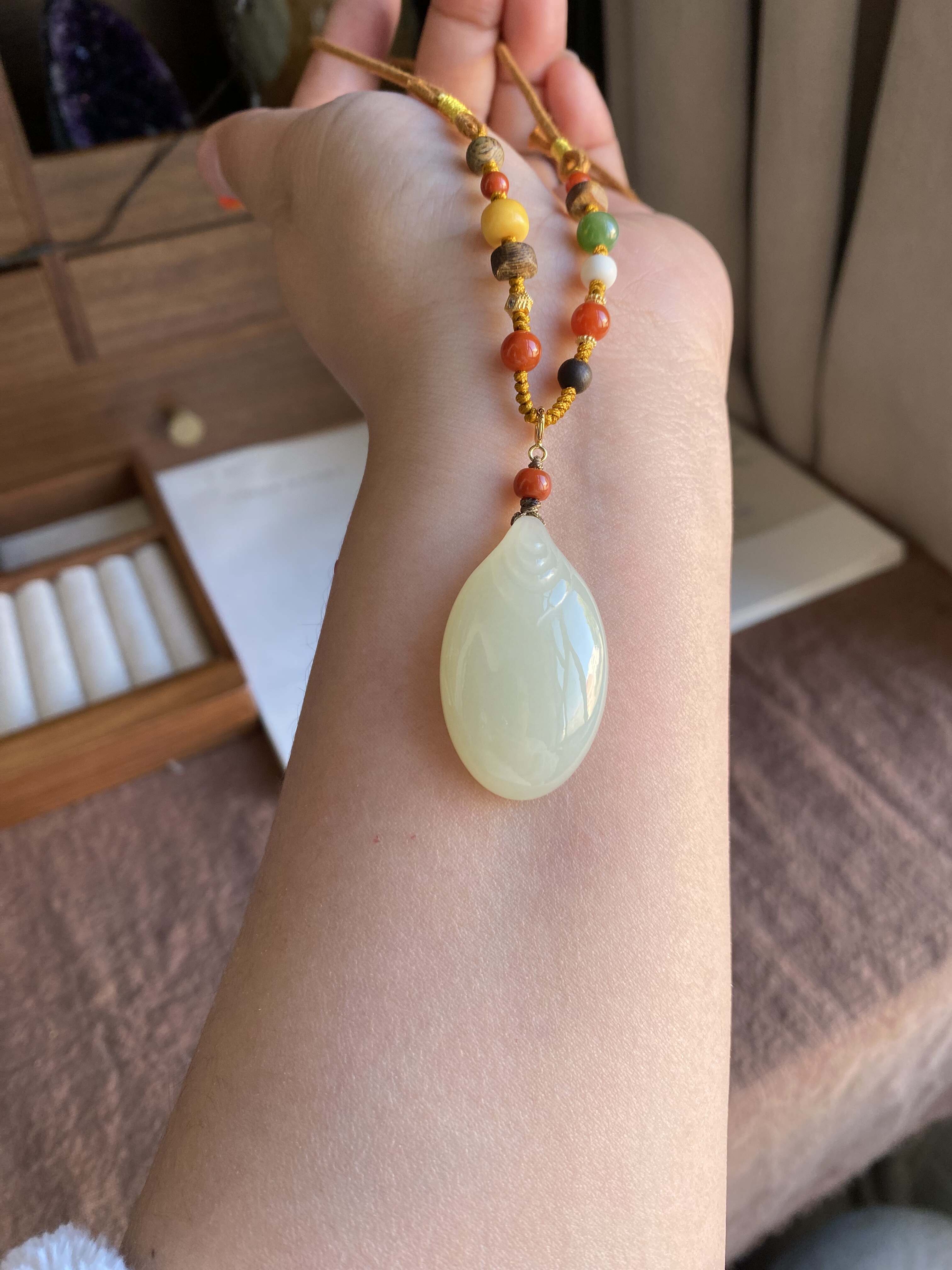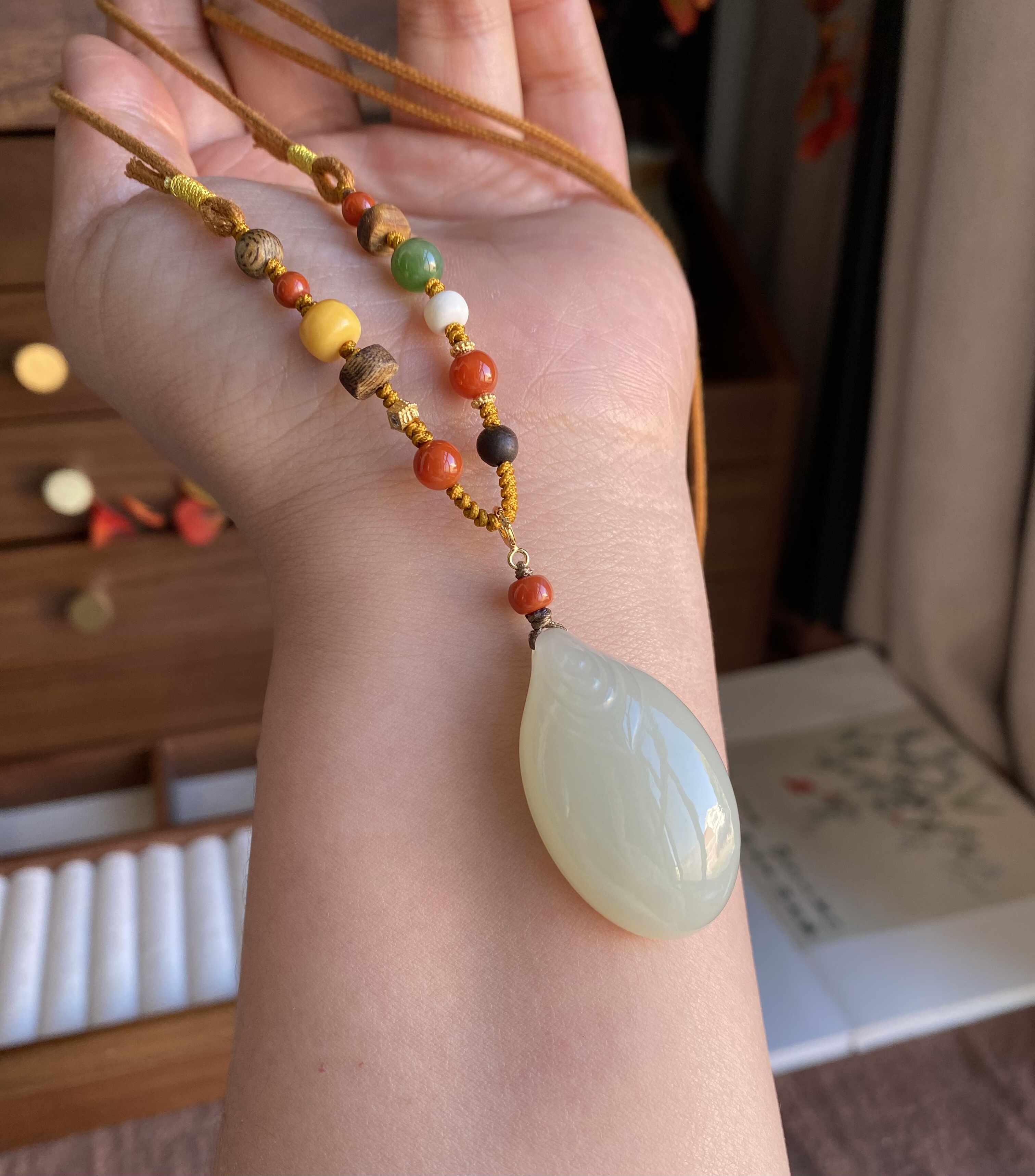 天然和田玉吊坠毛衣链老料干净国风项链闺蜜礼物