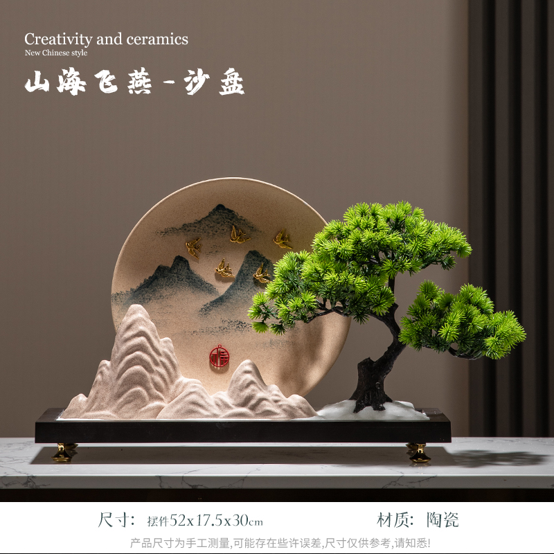 沙盘摆件a新中式办公室书房装饰品老板领导桌迎客松创意摆设工艺