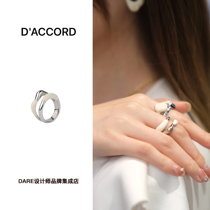 Dare买手店 DACCORD 打勾女孩双层奶油戒指法式复古欧美个性饰品