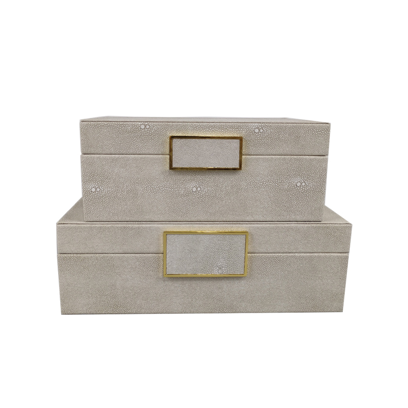 白色魔鬼鱼实木h收纳盒简约现代复古金属卡扣首饰盒家具城软装摆