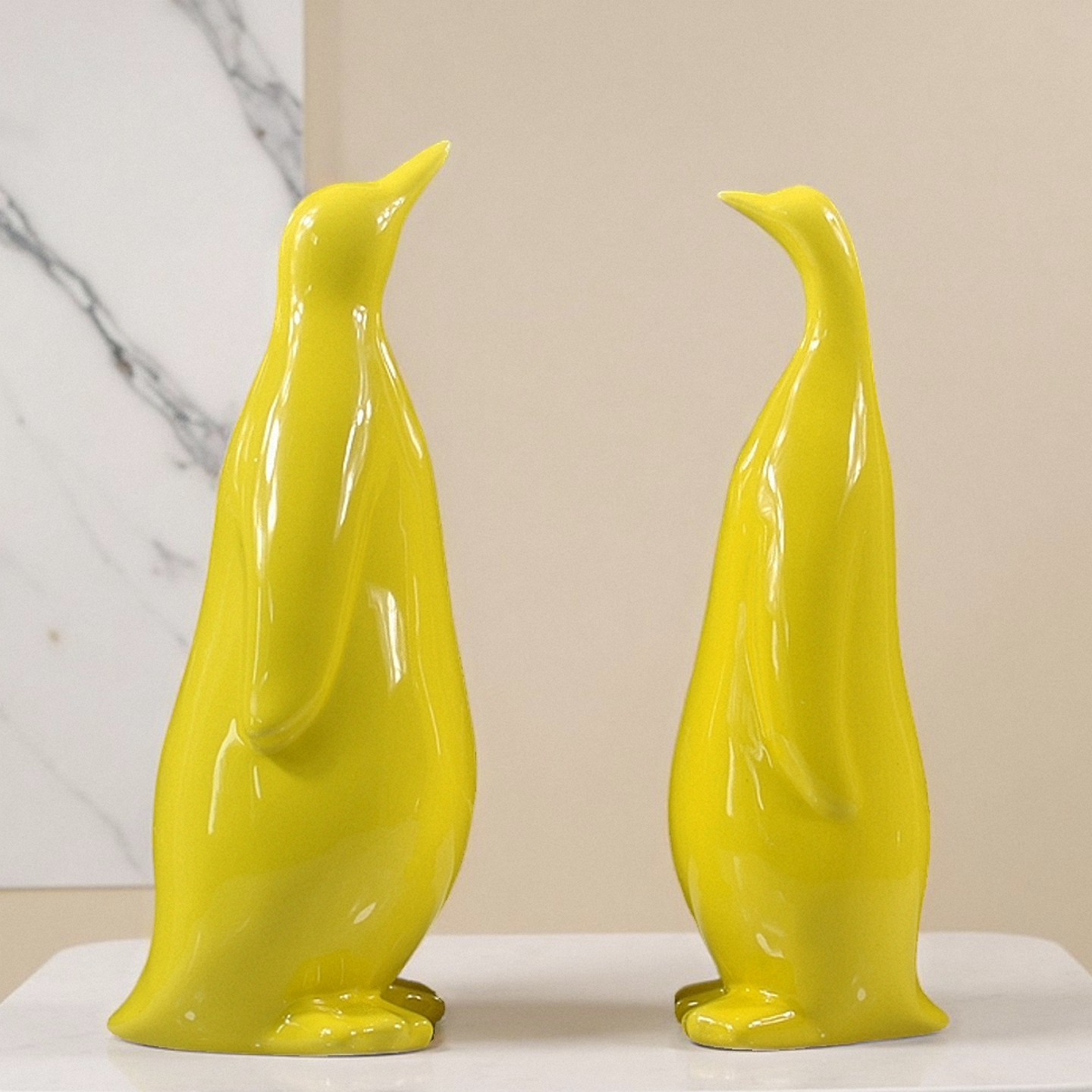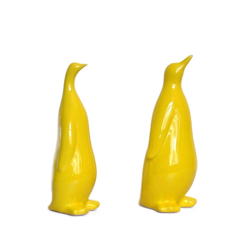 极简抽象后现代创意亮黄色陶瓷小企鹅摆件家居样板间软装摆台饰品
