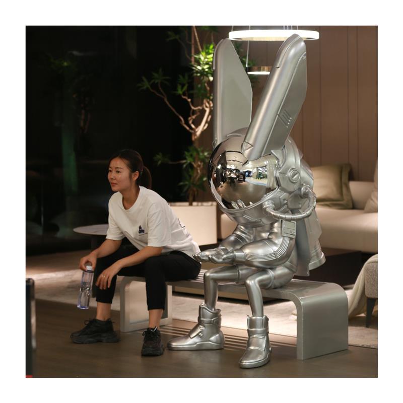 商场网红太空兔子玻璃钢雕塑月光兔电竞酒吧阿斯顿大摆件