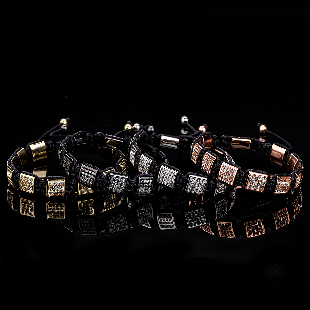 DIY正方形锆石钻简约可调节女手链男首饰手镯礼物袖口情侣小众