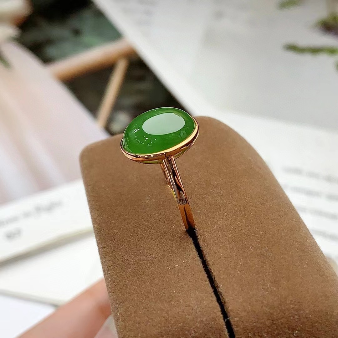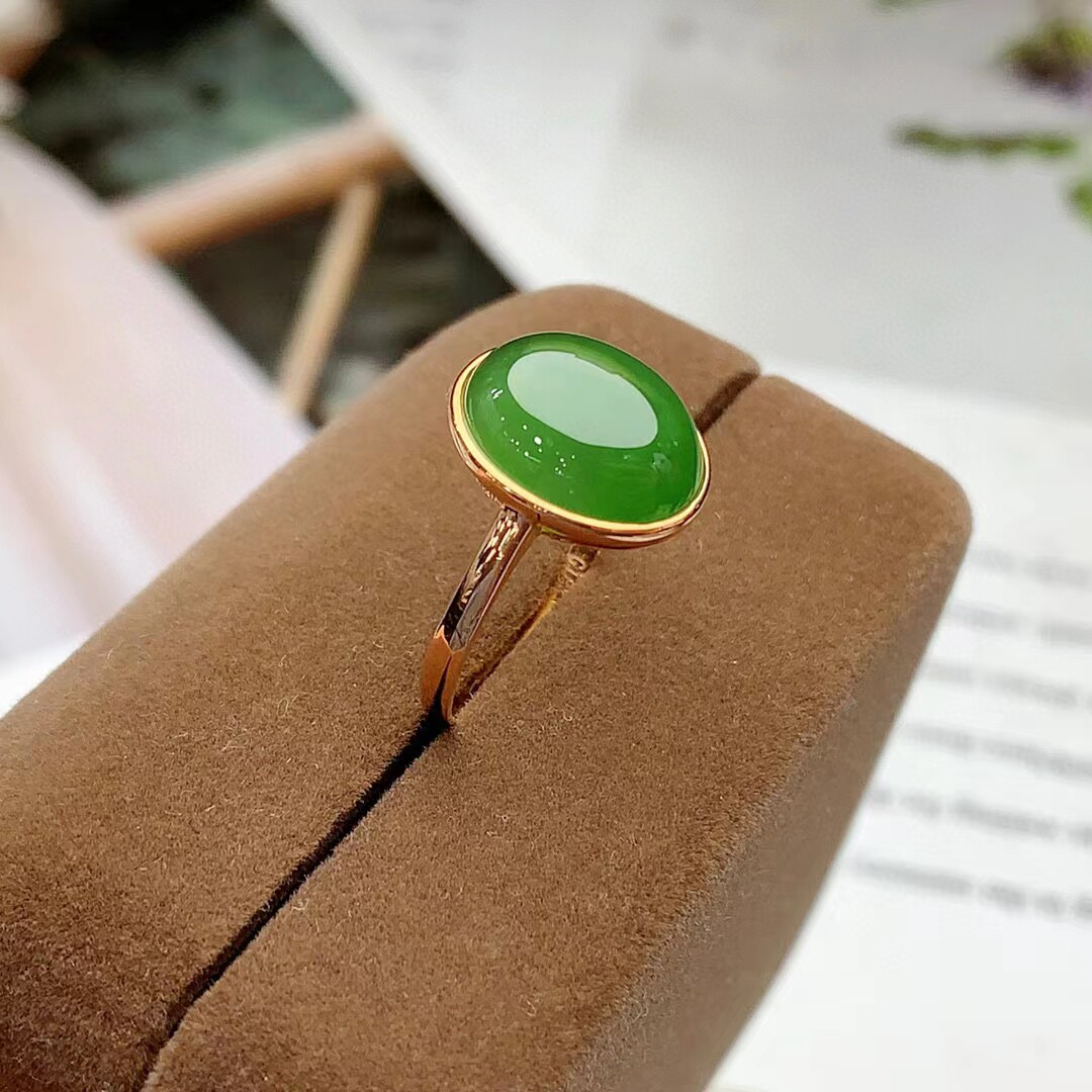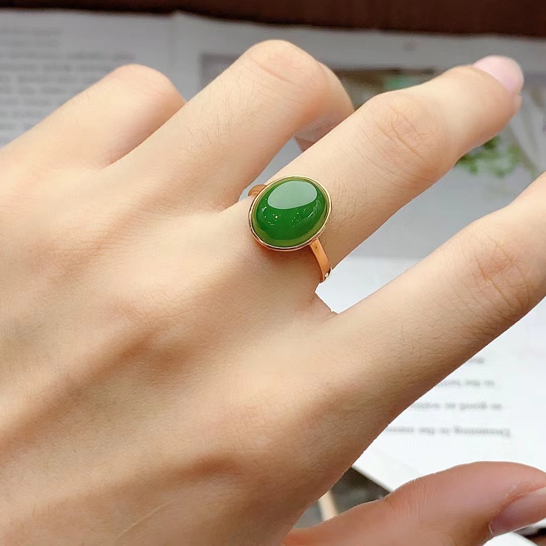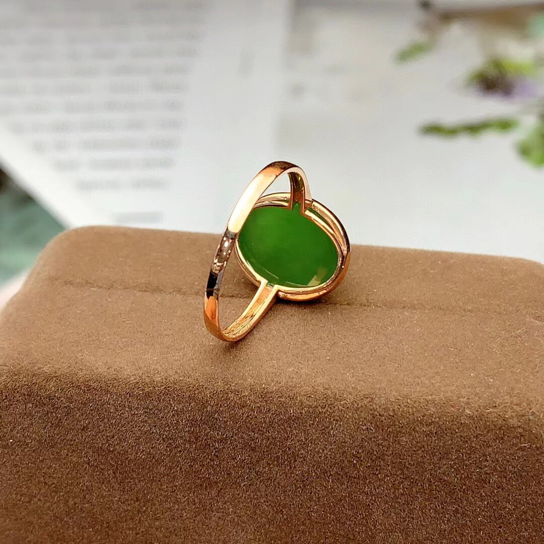 18k金镶嵌和田玉碧玉戒指女士精美戒指玉石戒指金镶玉时尚款女戒