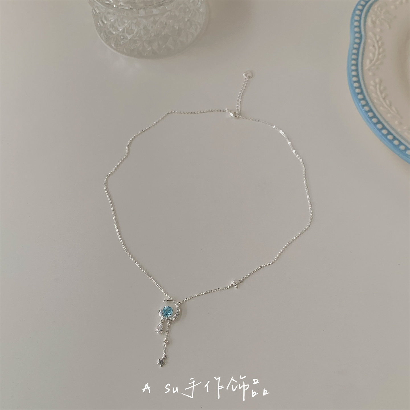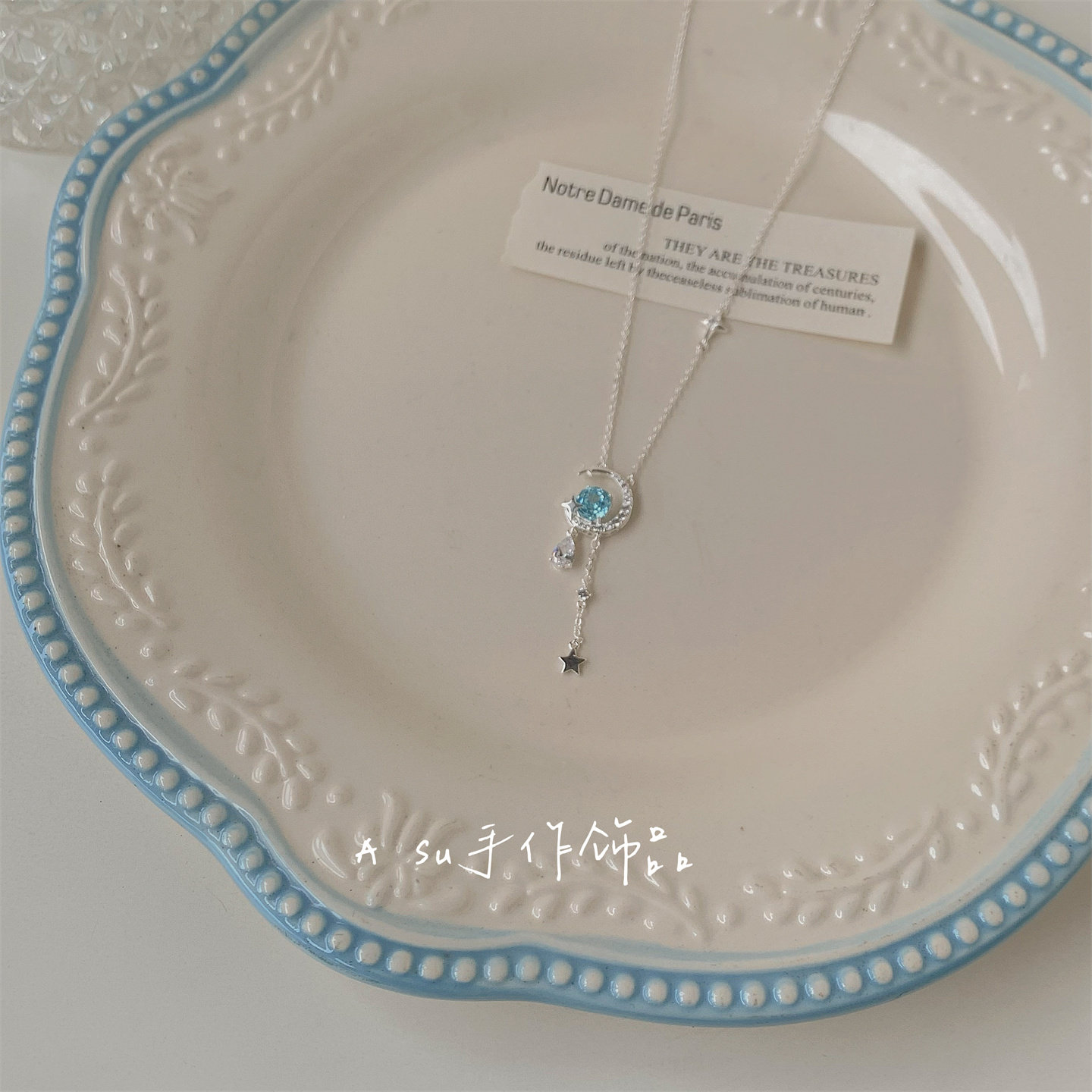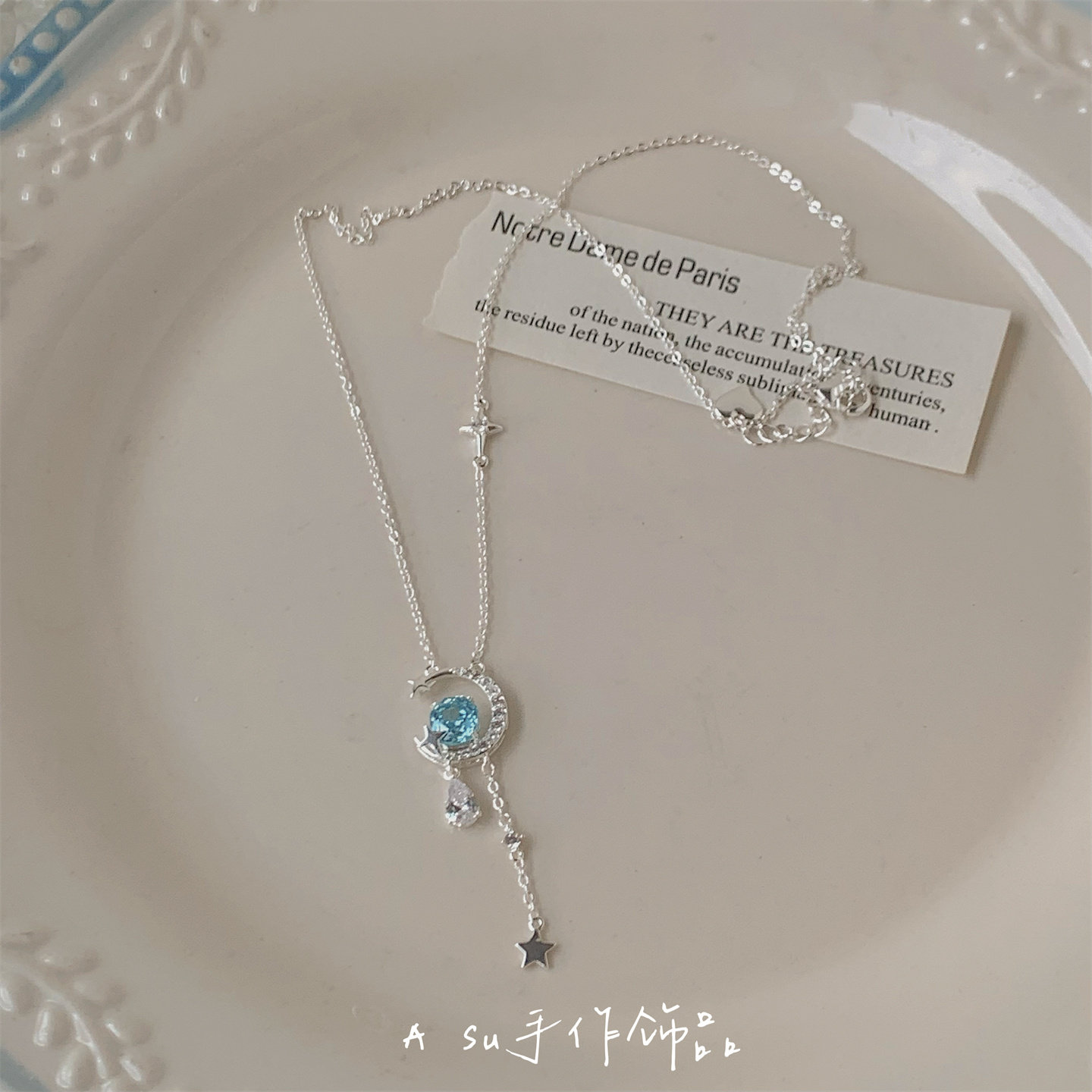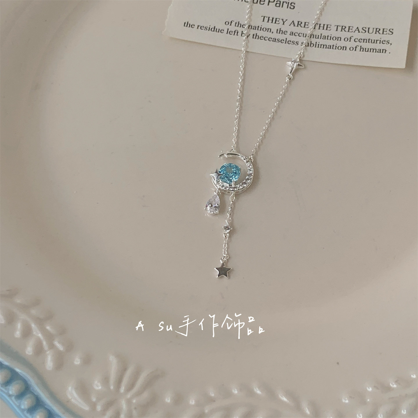 【满25包邮】气质蓝色星星月亮流苏项链女锁骨链不易掉色