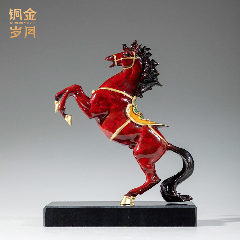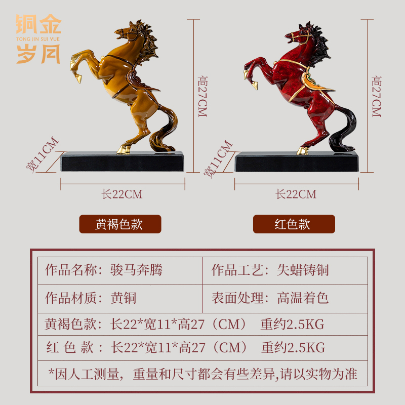 《骏马奔腾》铜金岁月黄铜马摆件工艺品公司办公室书房桌面装饰品