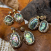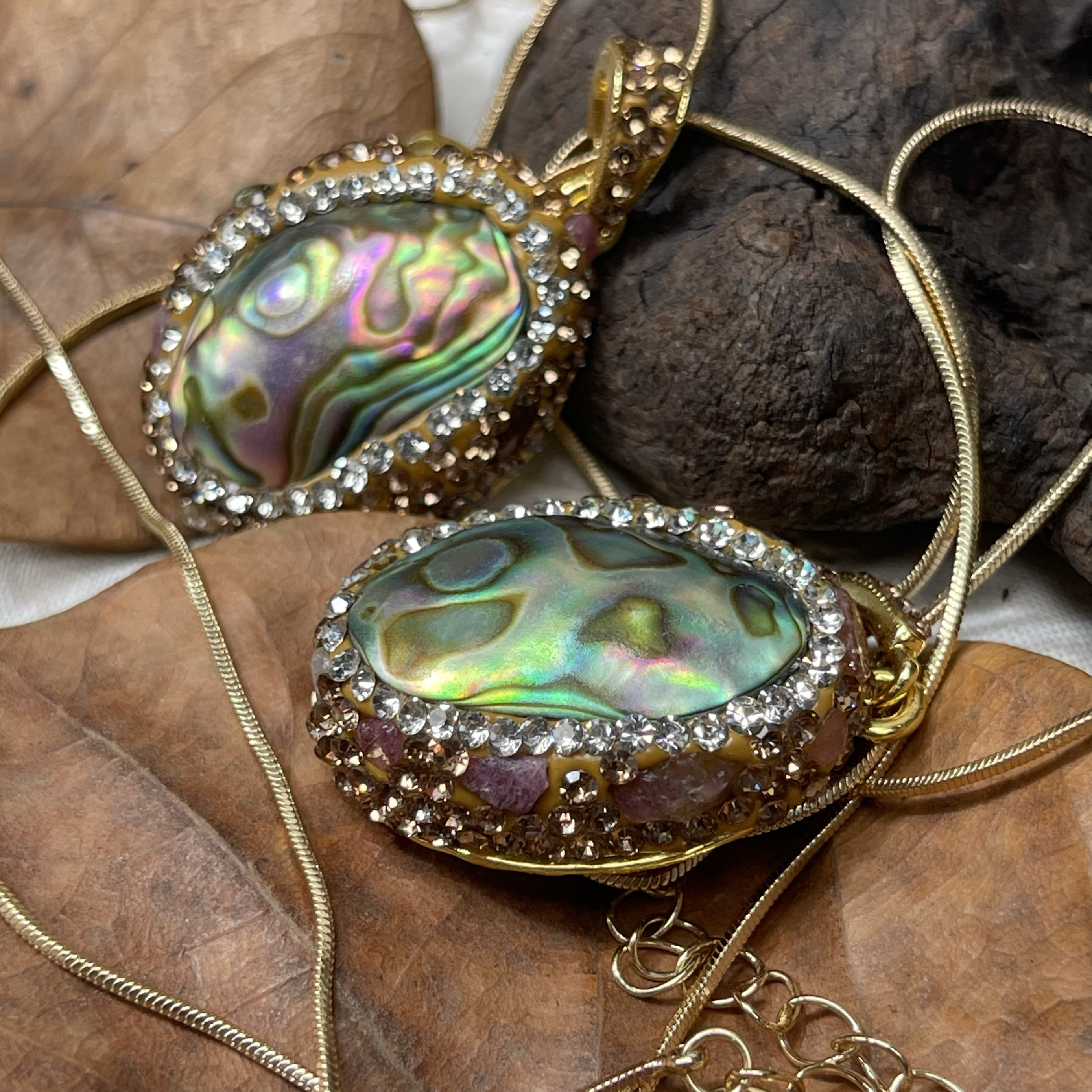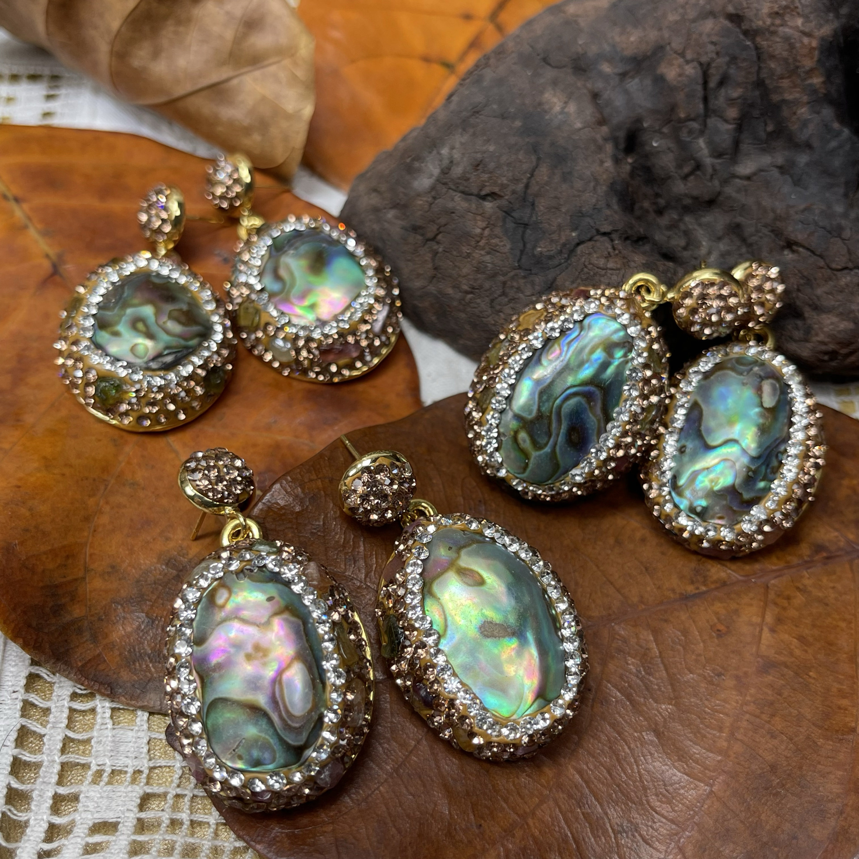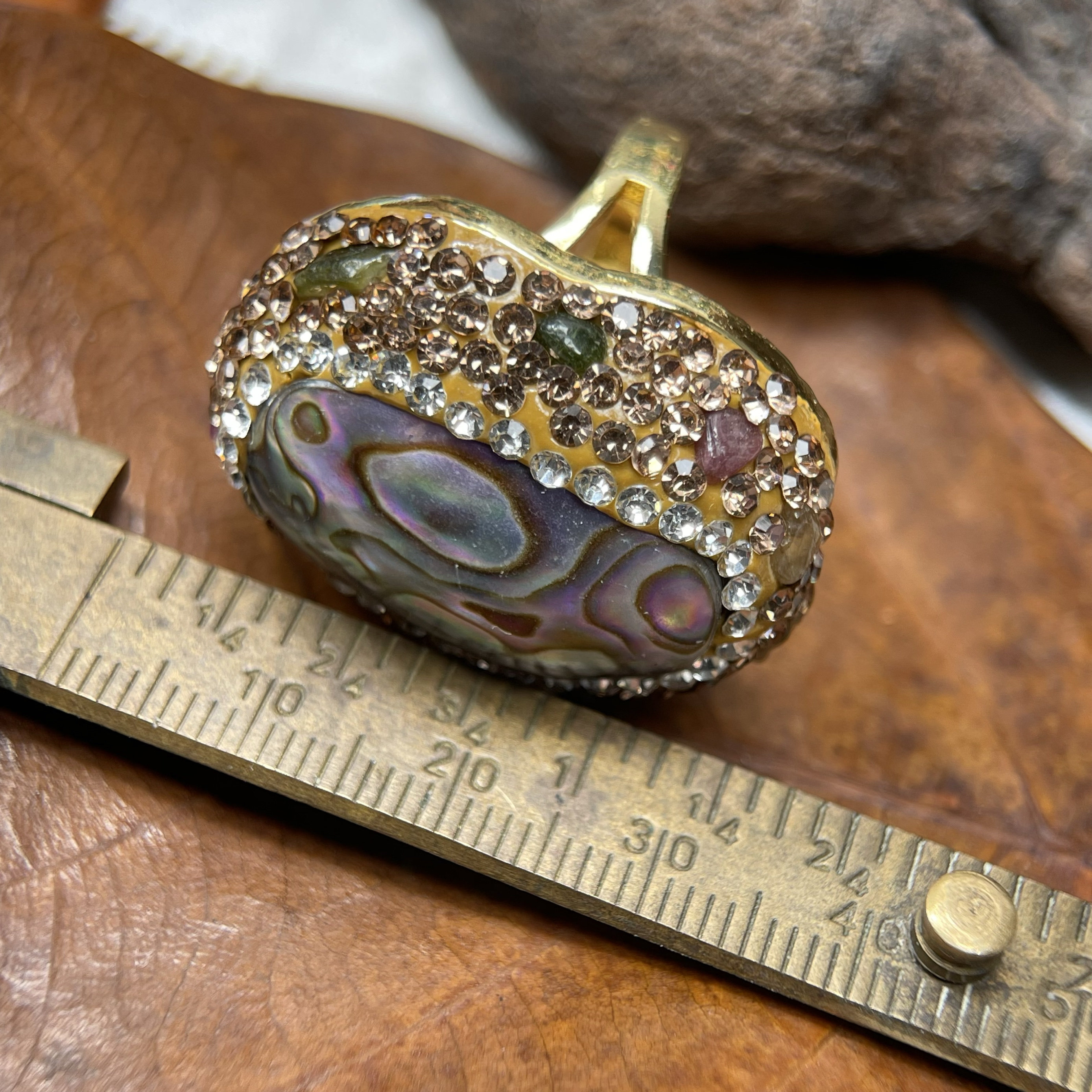 复古夸张天然鲍鱼贝壳镶嵌碧玺捷克钻可调节戒指耳环项链满25包邮