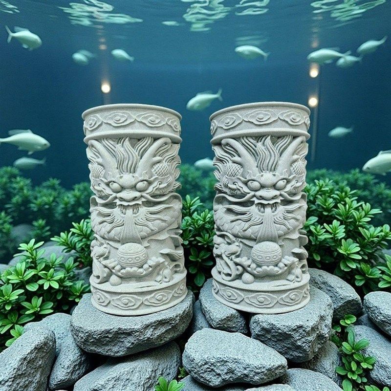 青砂石龙柱定海鱼缸庭院茶桌装饰祥云景观摆件
