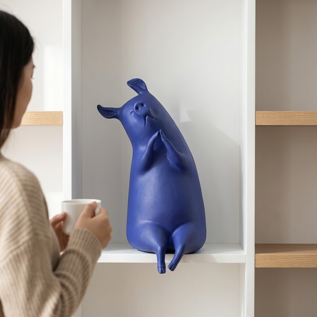 创意猪造型装饰摆件家居客厅书房桌面工艺品蓝色树脂摆设