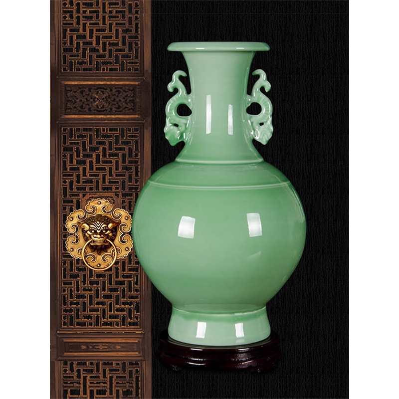 威弗列德景德镇陶瓷器仿古青釉双耳花瓶插花客厅博古架装饰品摆件